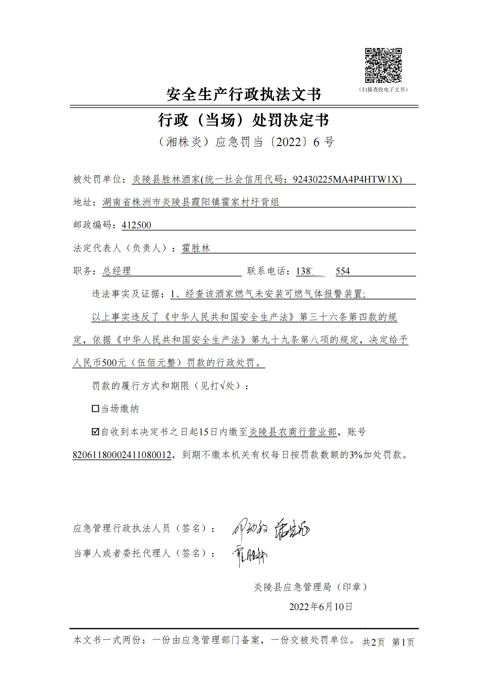 炎陵县应急管理局行政处罚决定书(湘株炎)应急罚当〔2022〕6号