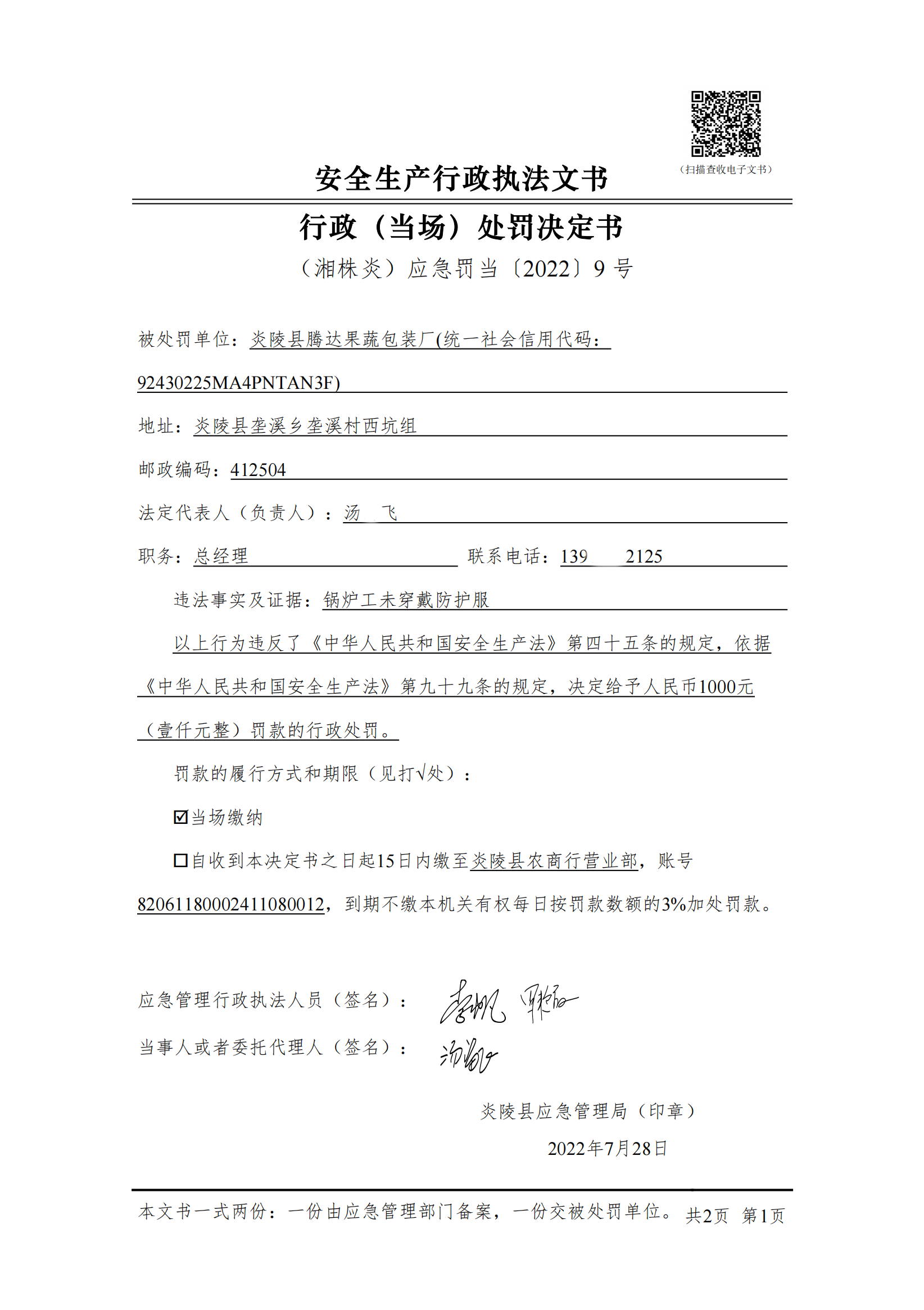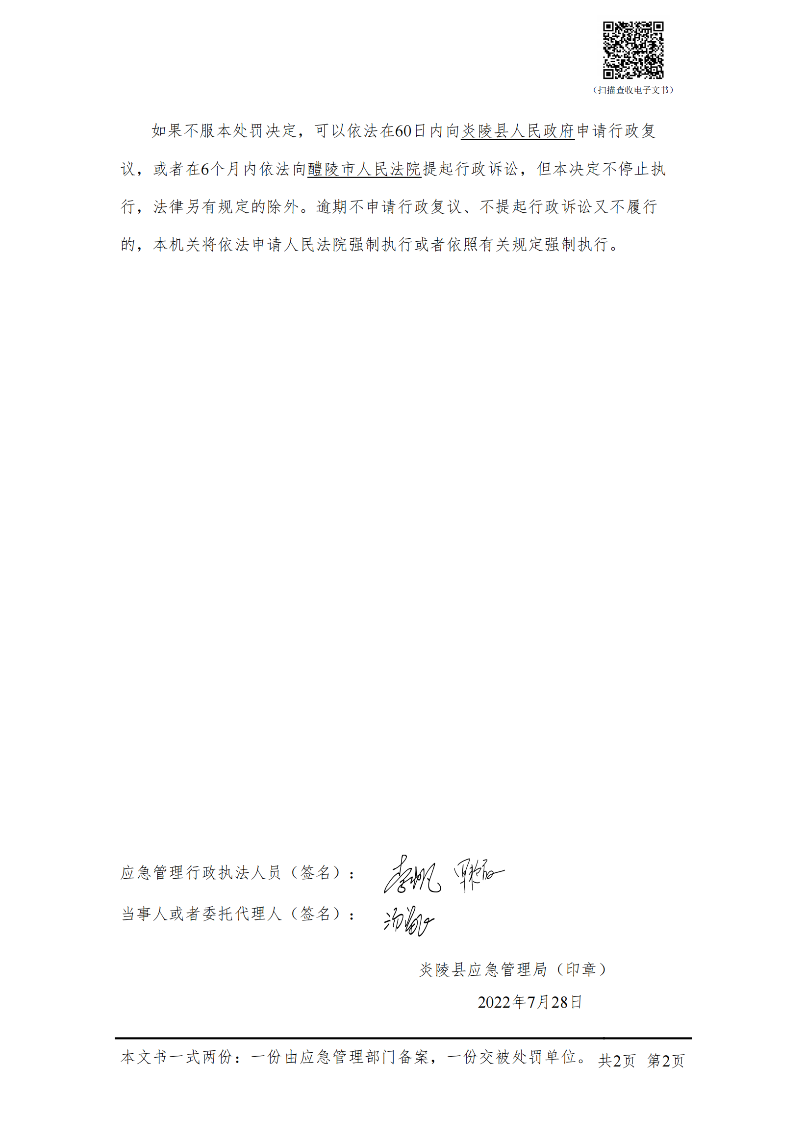 炎陵县应急管理局行政处罚决定书(湘株炎)应急罚当〔2022〕9号