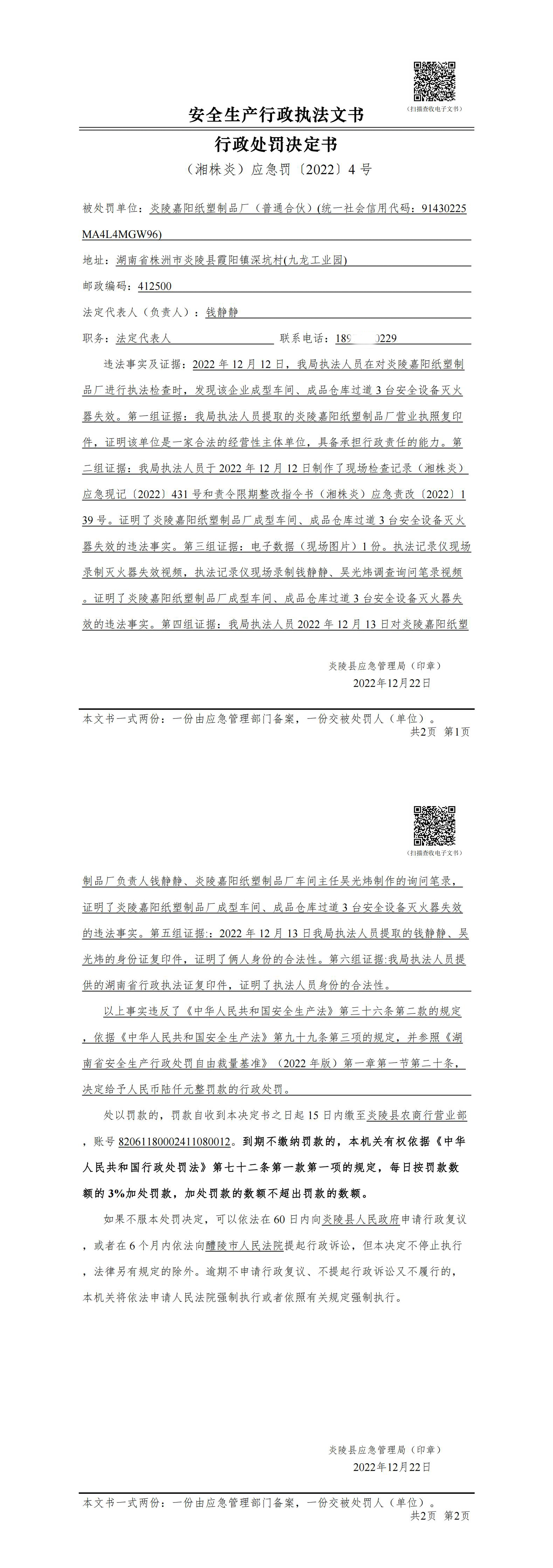 炎陵县应急管理局行政处罚决定书(湘株炎)应急罚〔2022〕4 号