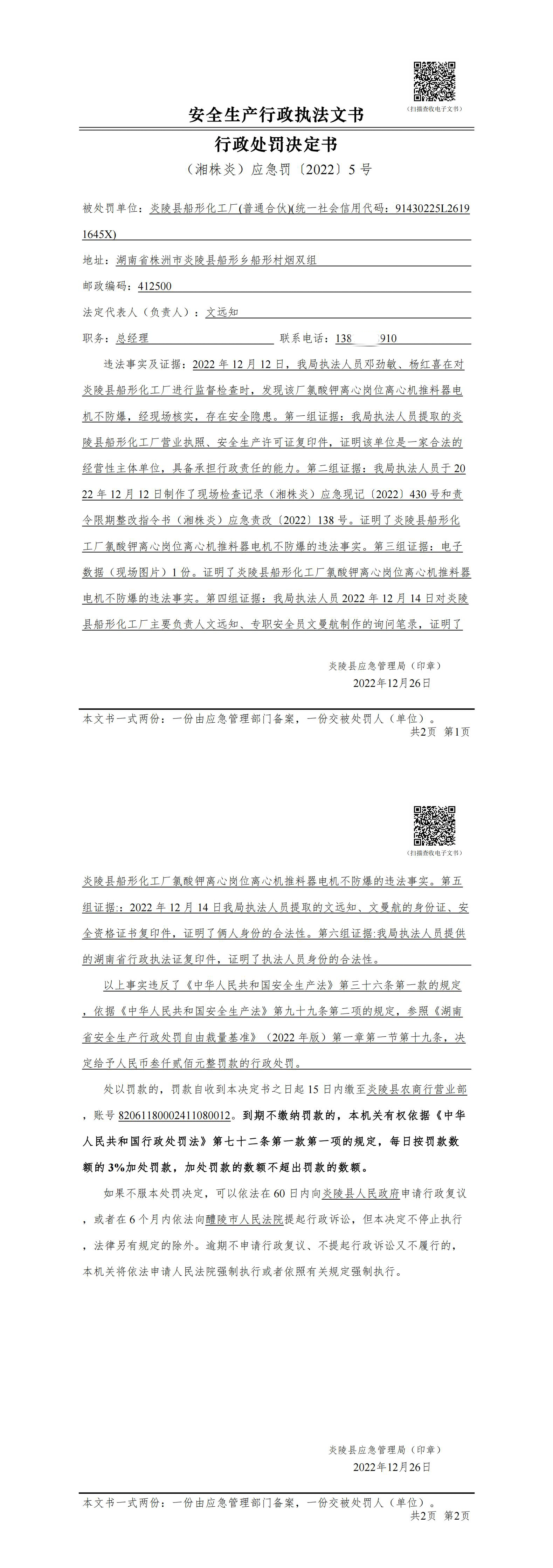 炎陵县应急管理局行政处罚决定书(湘株炎)应急罚〔2022〕5 号