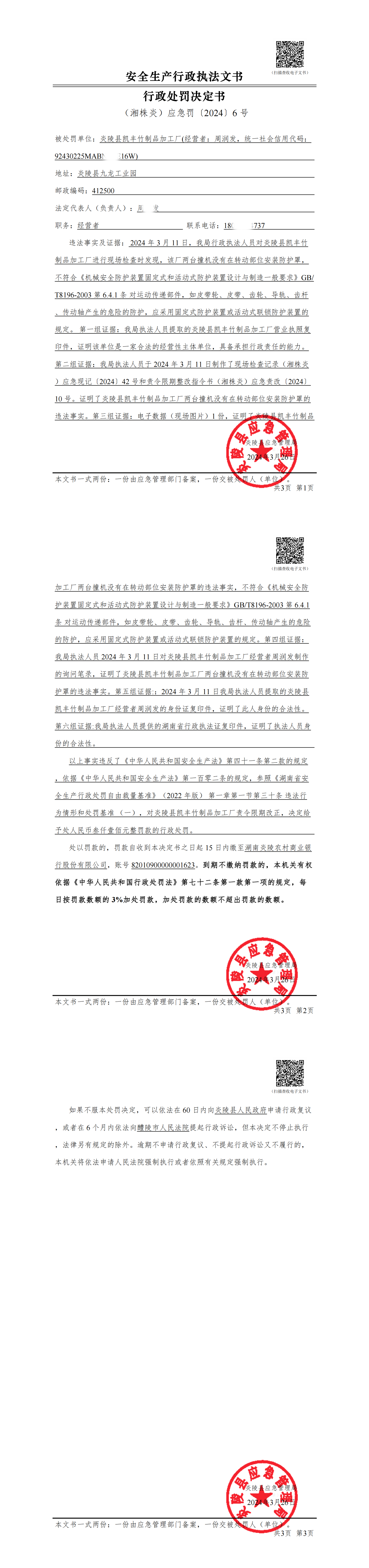 炎陵县应急管理局行政处罚决定书(湘株炎)应急罚〔2024〕6号