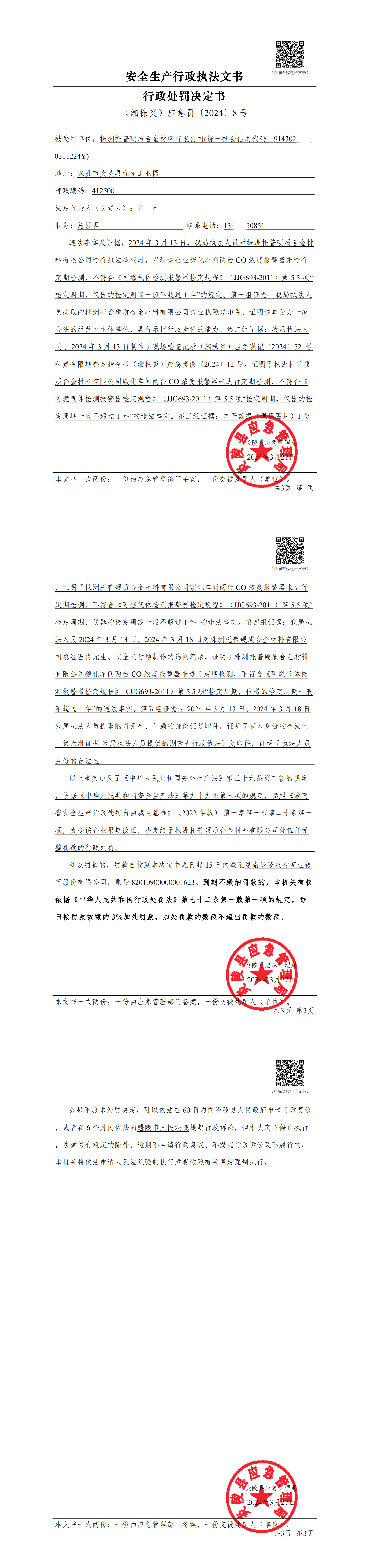 炎陵县应急管理局行政处罚决定书(湘株炎)应急罚〔2024〕8号