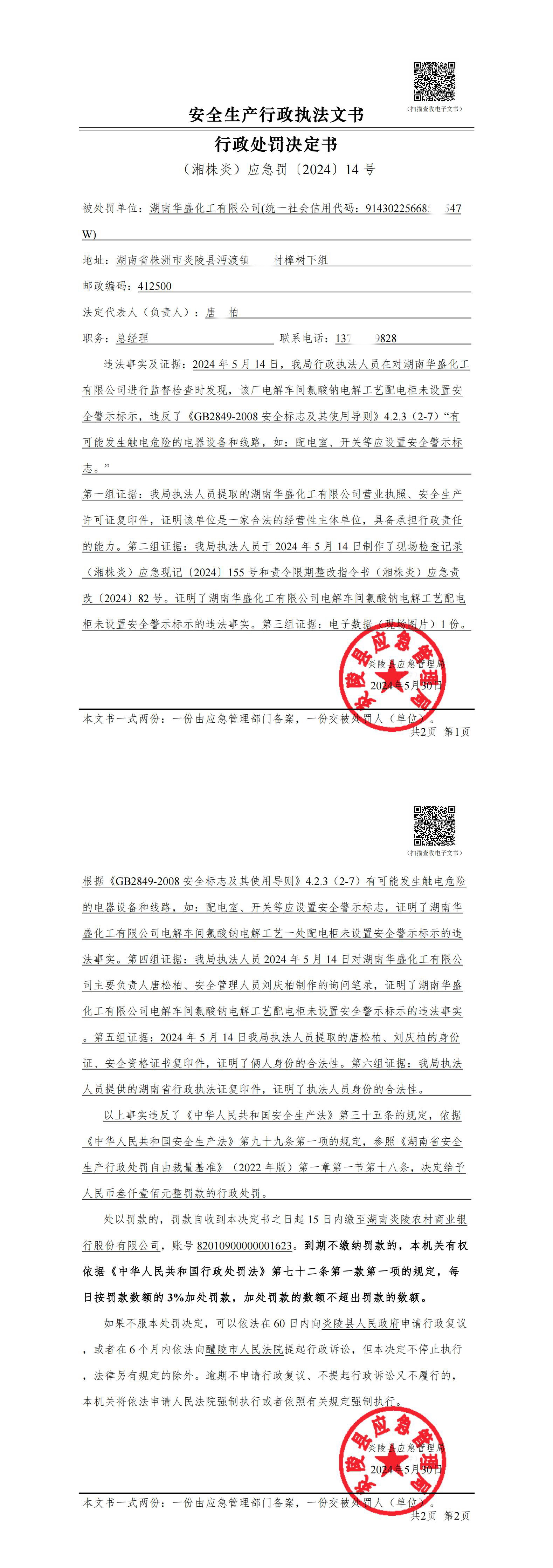 炎陵县应急管理局行政处罚决定书(湘株炎)应急罚〔2024〕14号