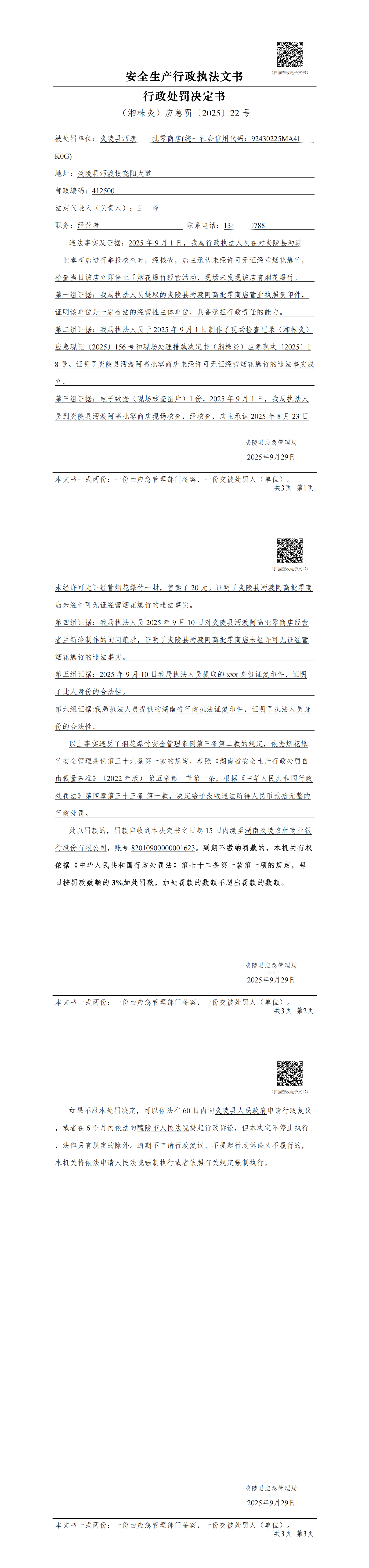 炎陵县应急管理局行政处罚决定书(湘株炎)应急罚〔2025〕22号
