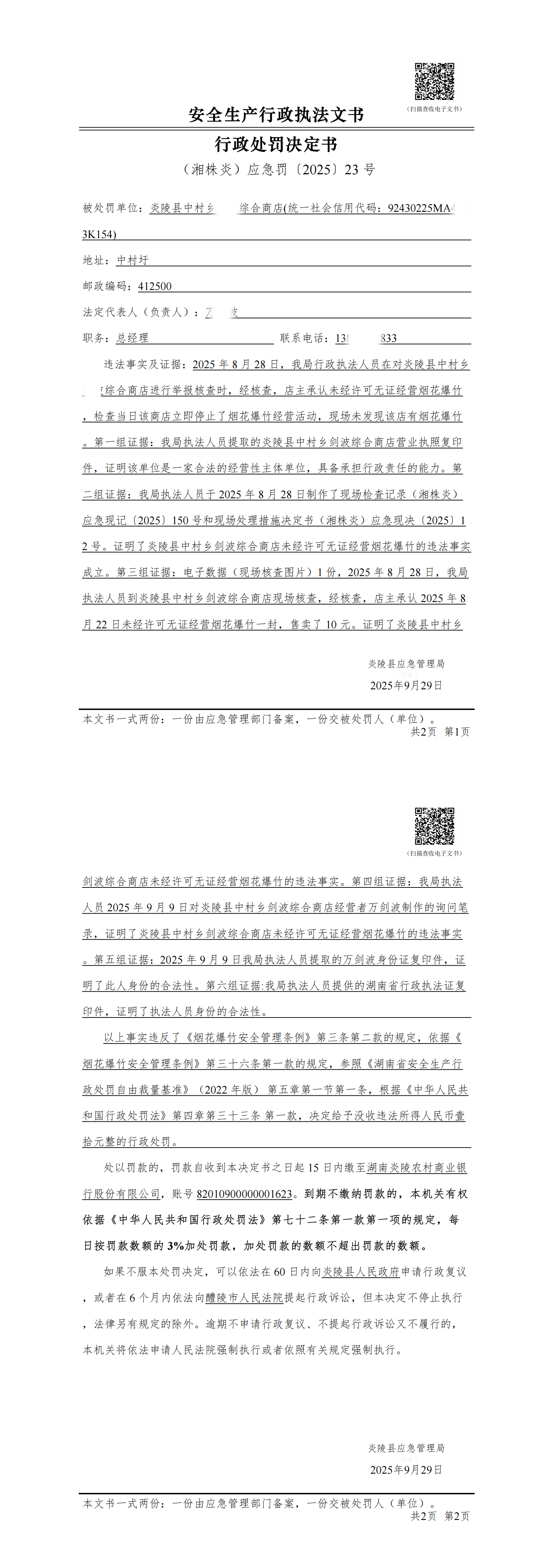 炎陵县应急管理局行政处罚决定书(湘株炎)应急罚〔2025〕23号