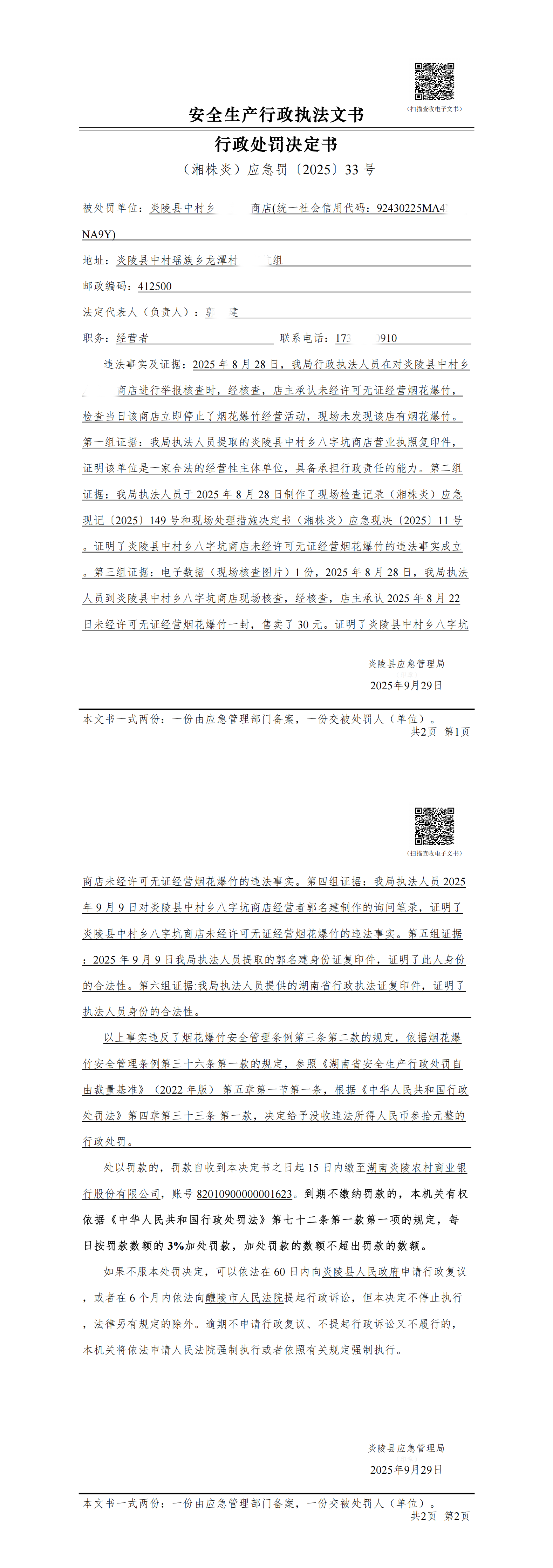 炎陵县应急管理局行政处罚决定书(湘株炎)应急罚〔2025〕33号