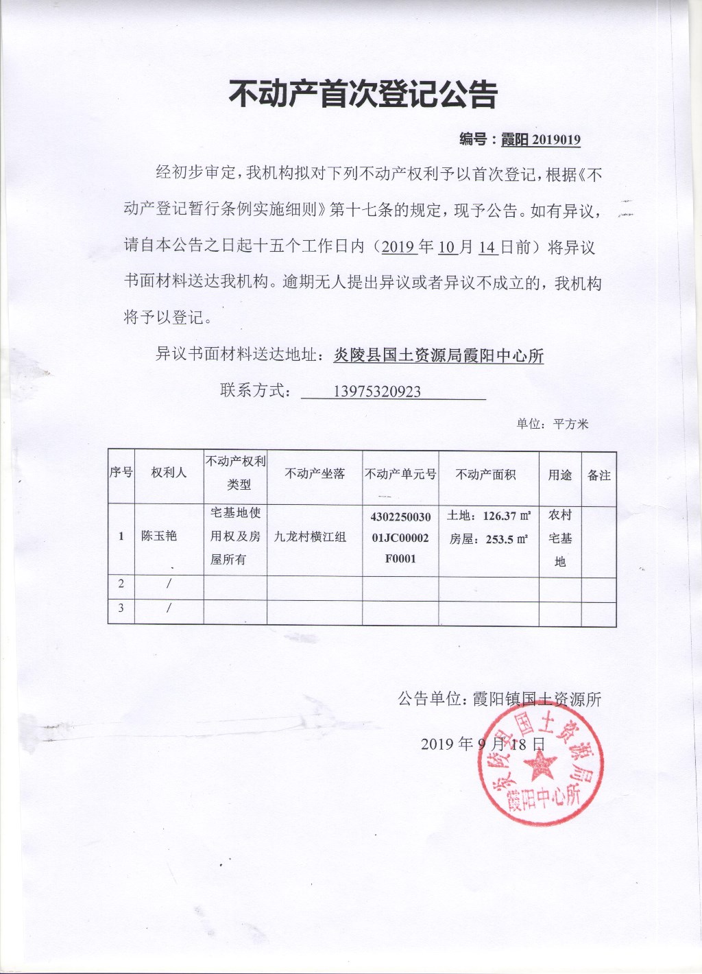 陈玉艳-不动产首次登记