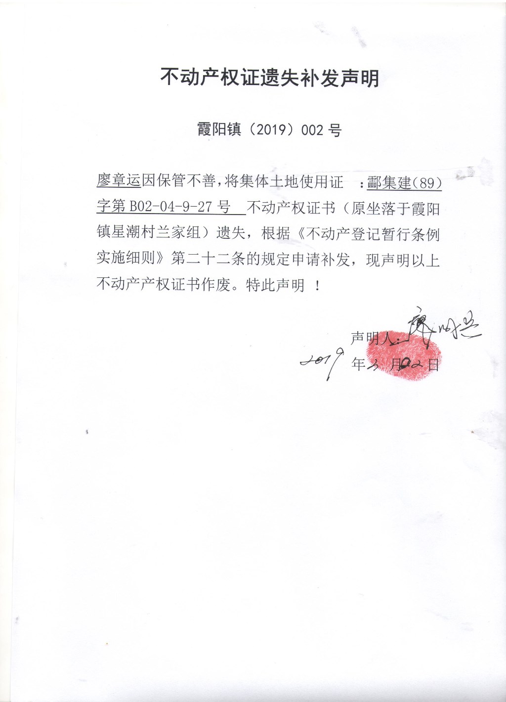 廖成兵——老证遗失
