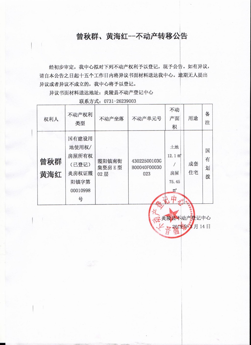 曾秋群 黄海红转移公告