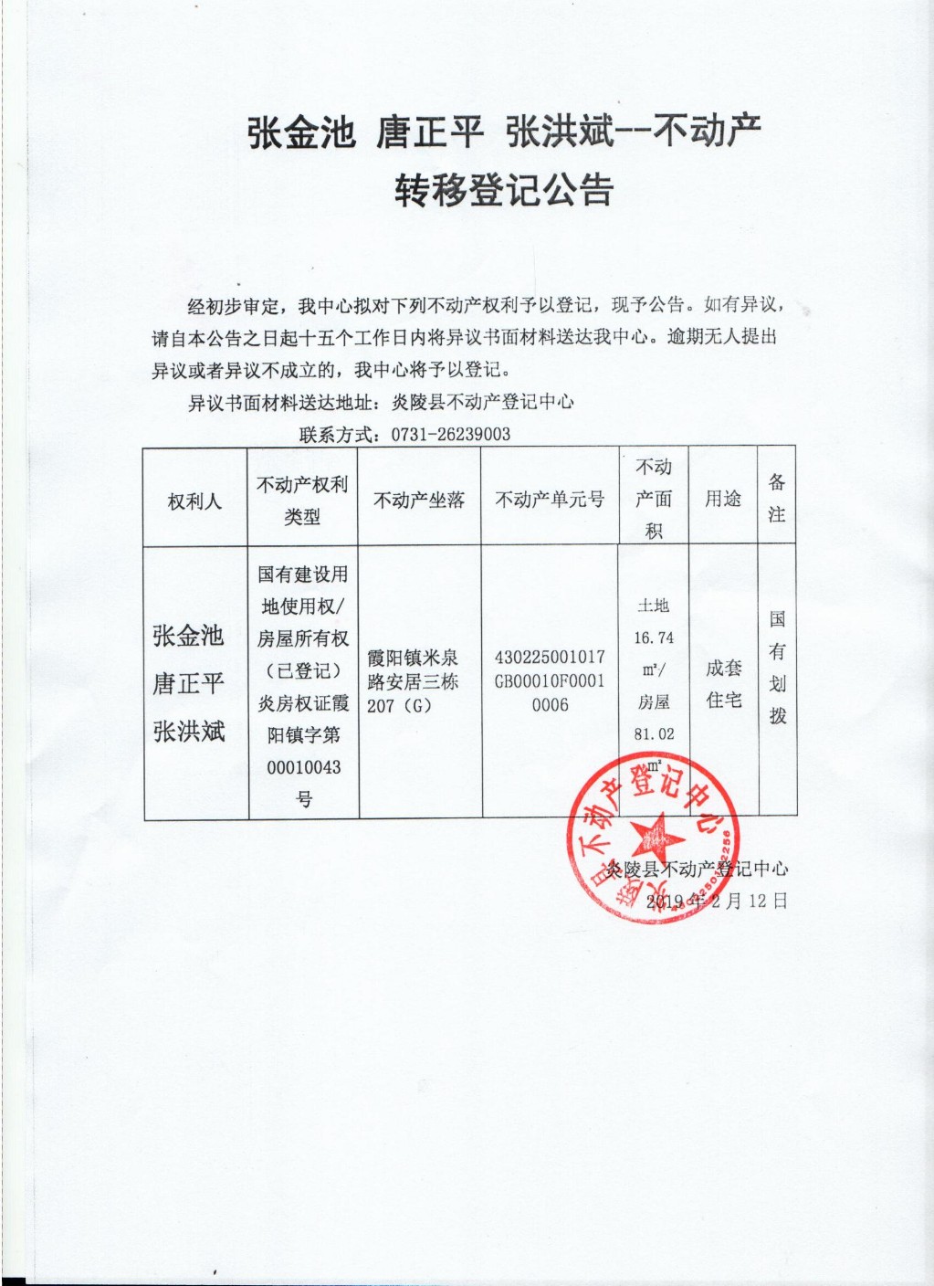 信息来源:炎陵县不动产登记中心