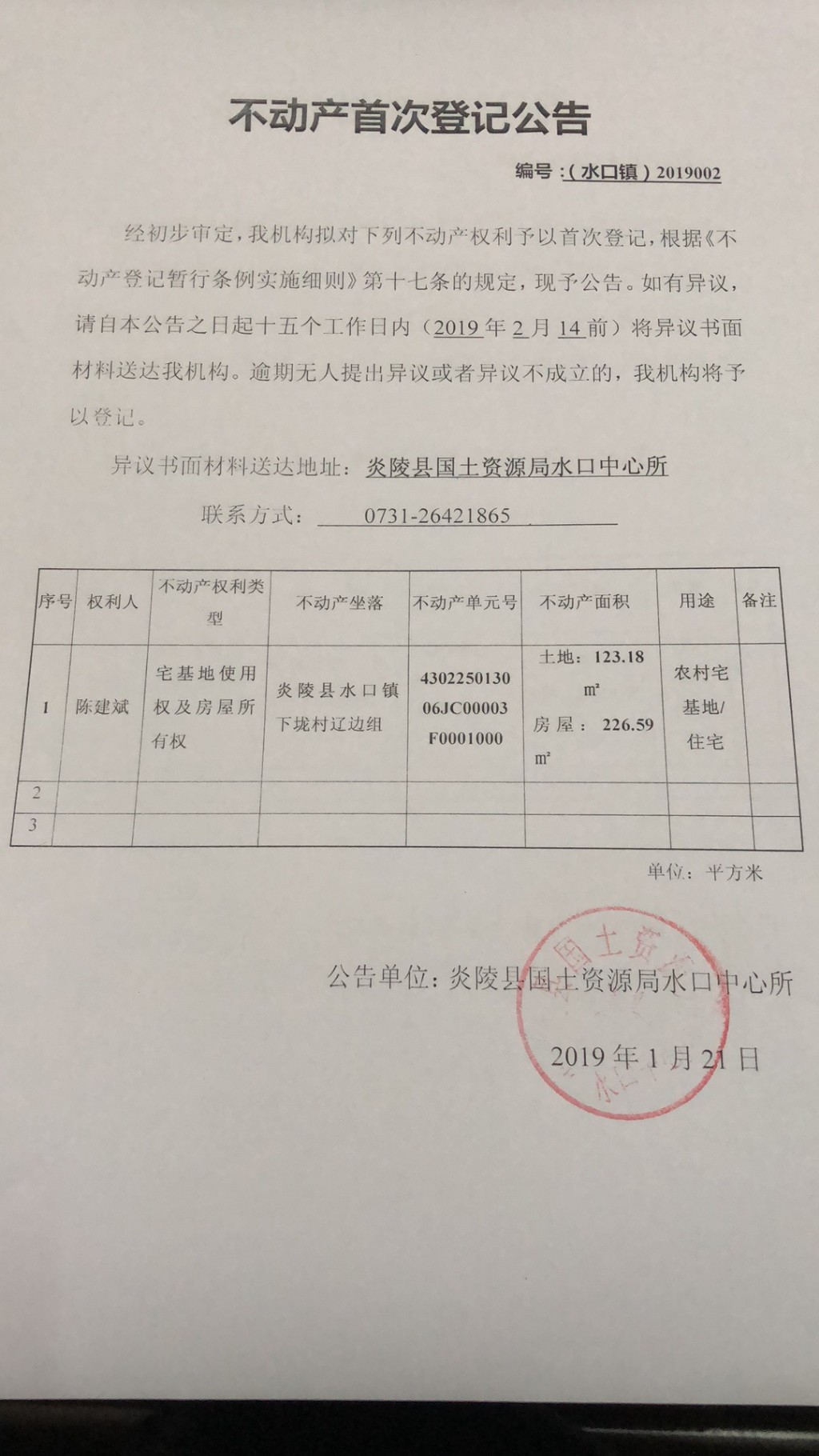 陈建斌-不动产首次登记公告