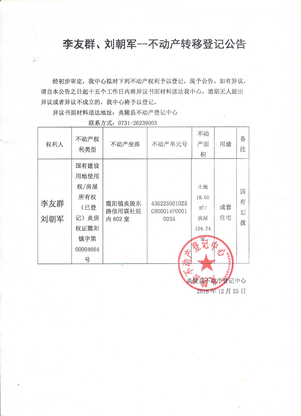 李友群、刘朝军-不动产转移登记