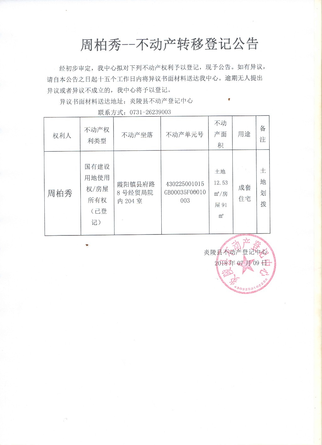 信息来源:炎陵县不动产登记中心