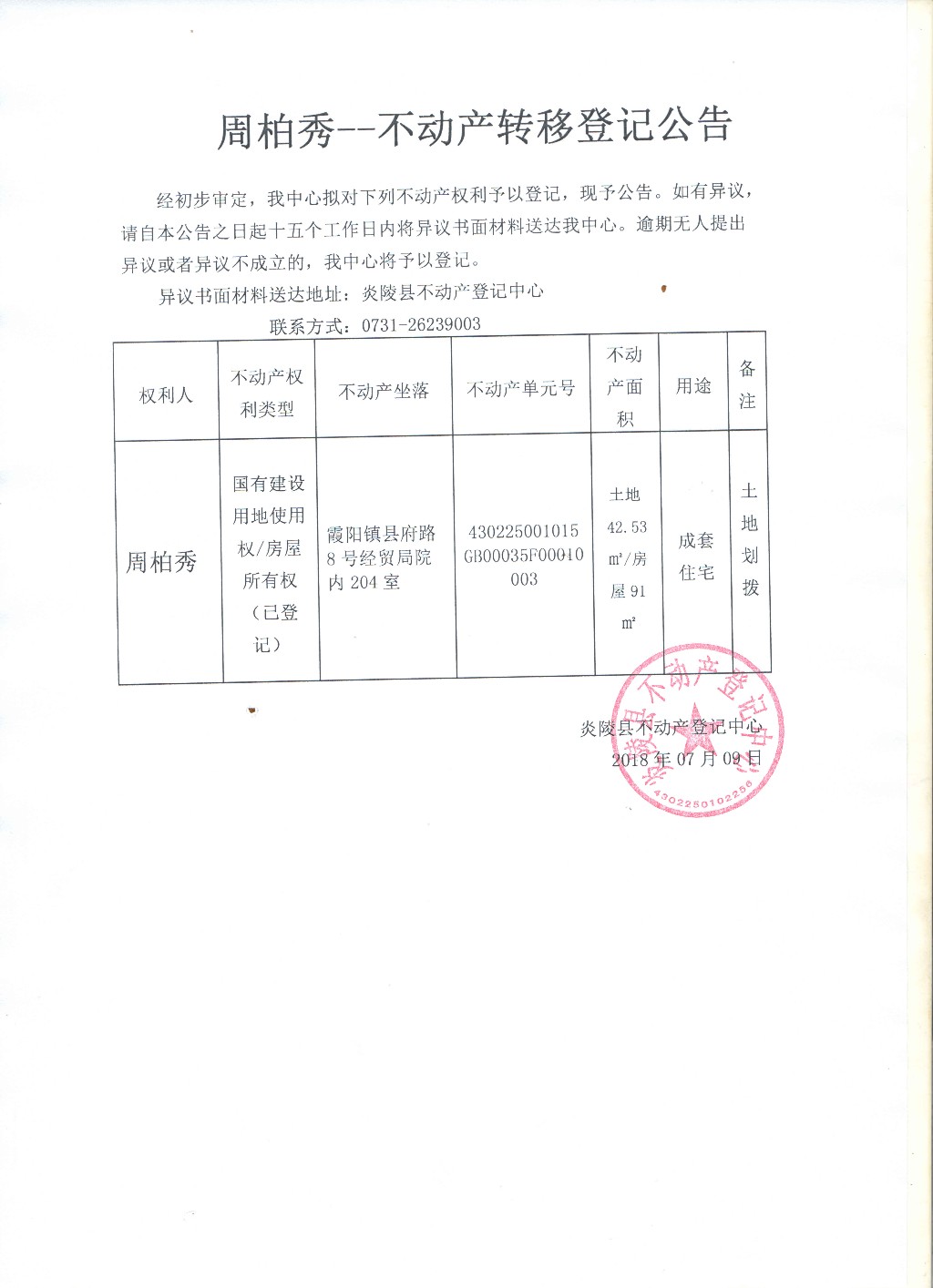周柏秀-不动产转移公告