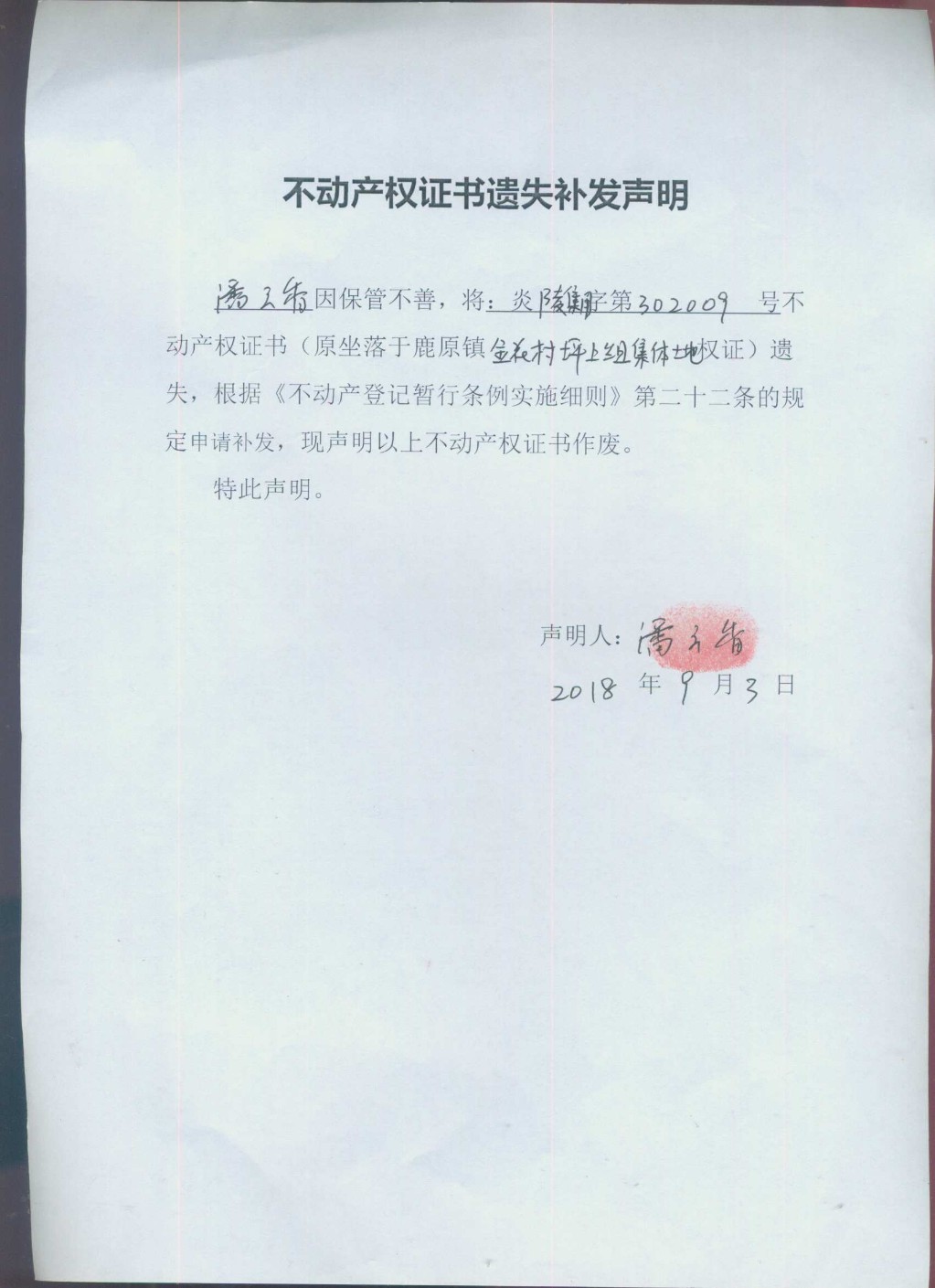潘云香-遗失补证公告