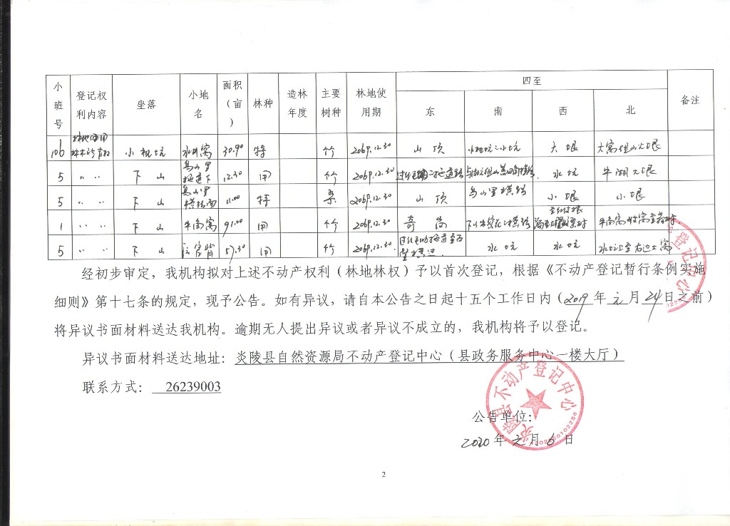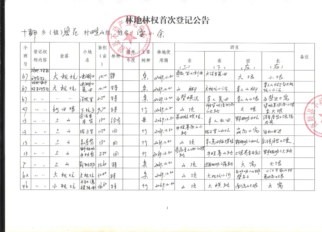 雷小余--林权首次登记公告