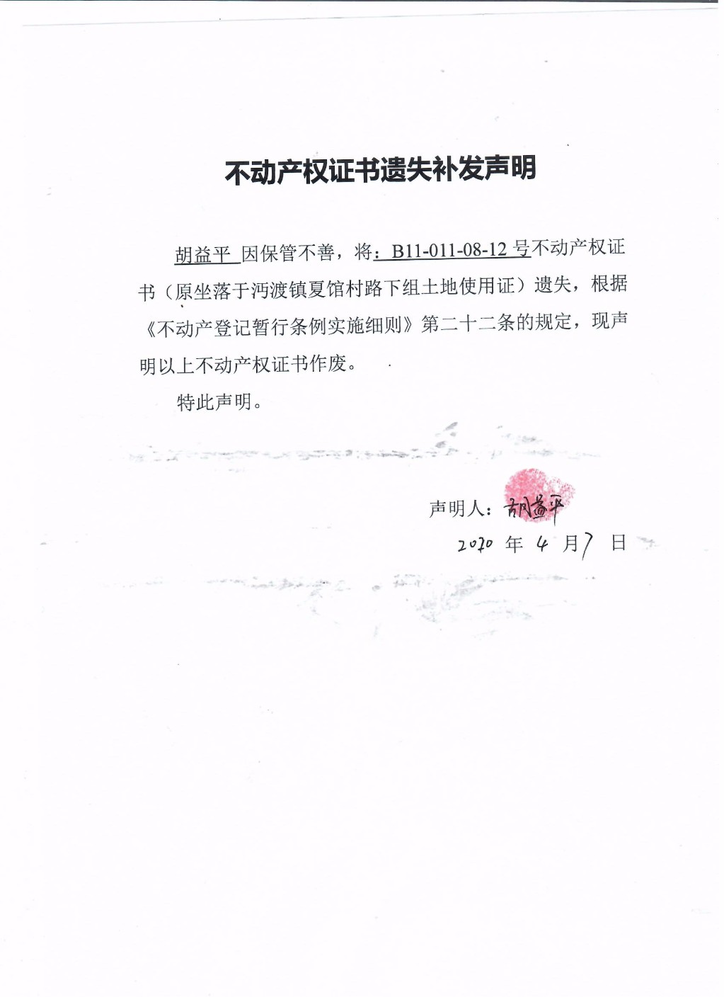 胡益平--不动产权证注销公告