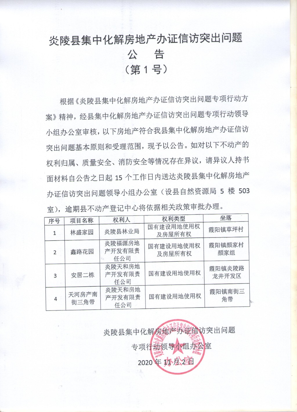炎陵县集中化解房地产办证信访突出问题公告(第1号)