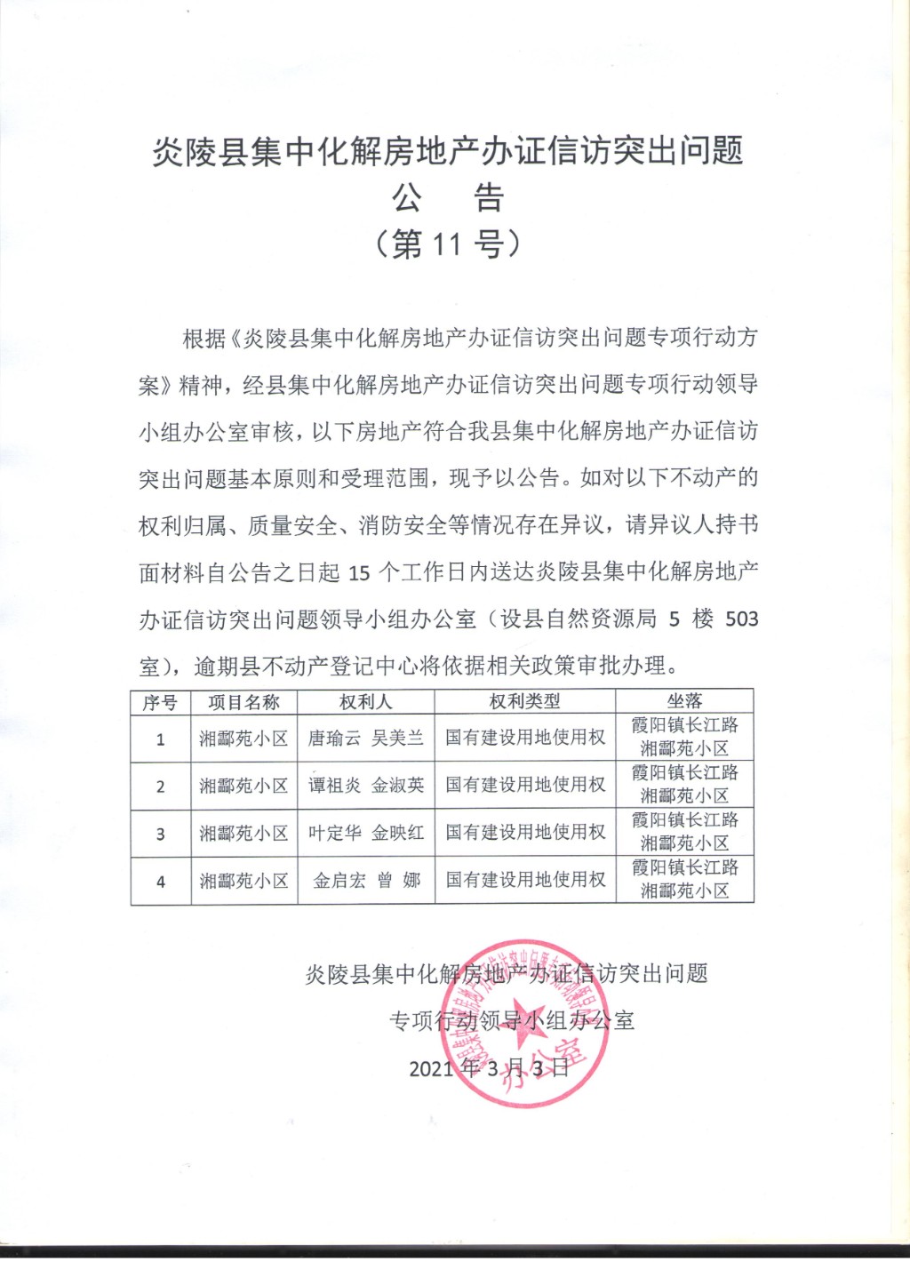 炎陵县集中化解房地产办证信访突出问题公告(第11号)