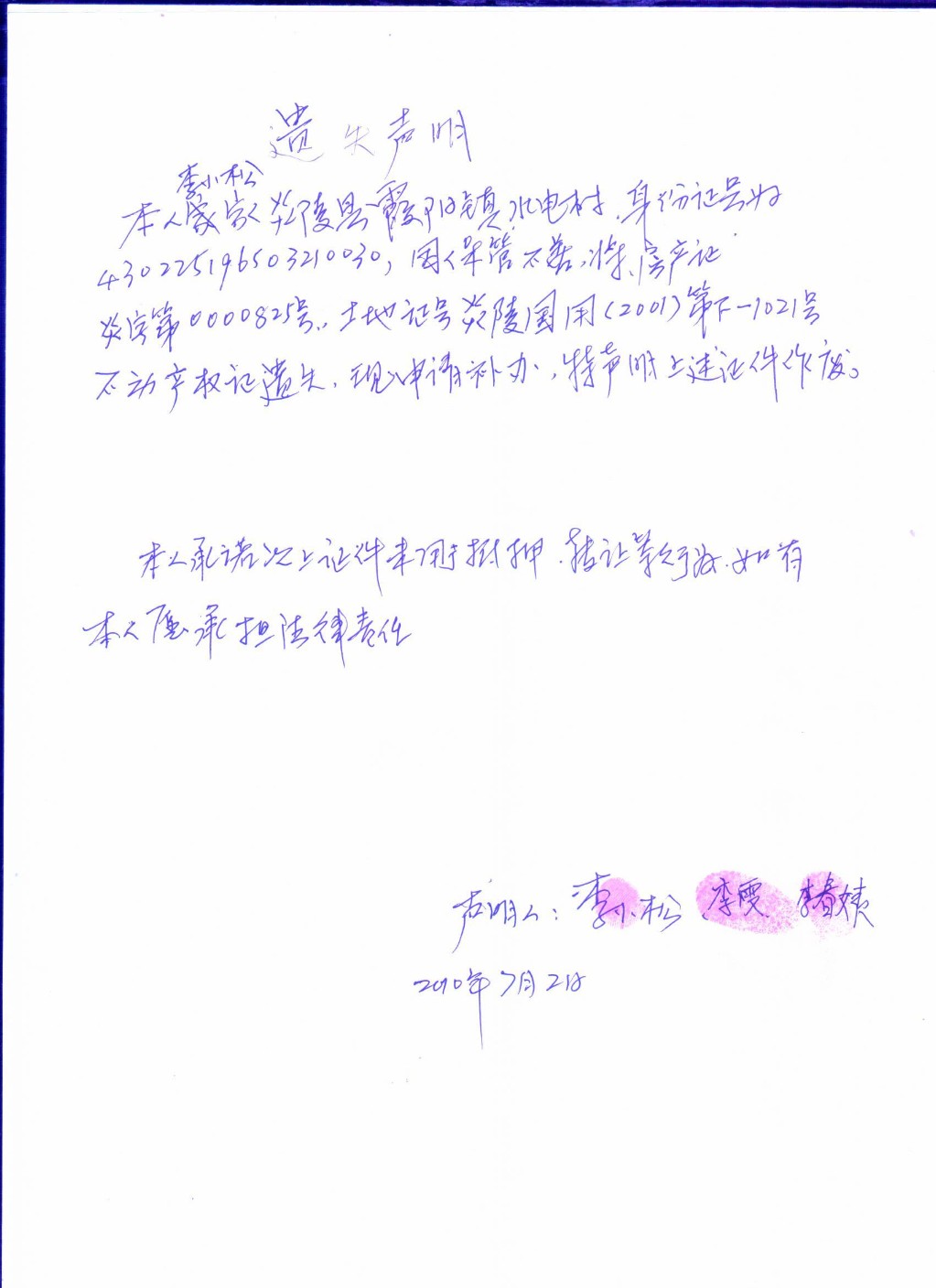 李小松、李雯、李春姨——不动产证遗失公告