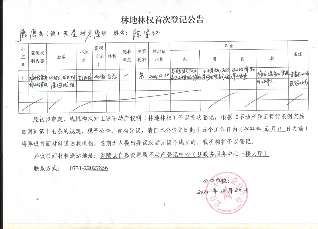 陈军红-不动产权(林权)首次登记公示