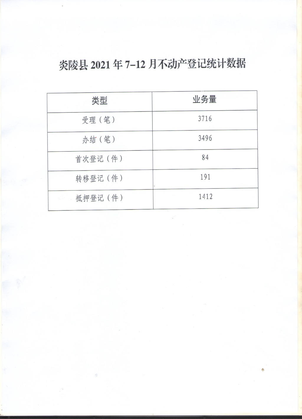 炎陵县不动产登记中心--2021年7月-12月登记统计数据