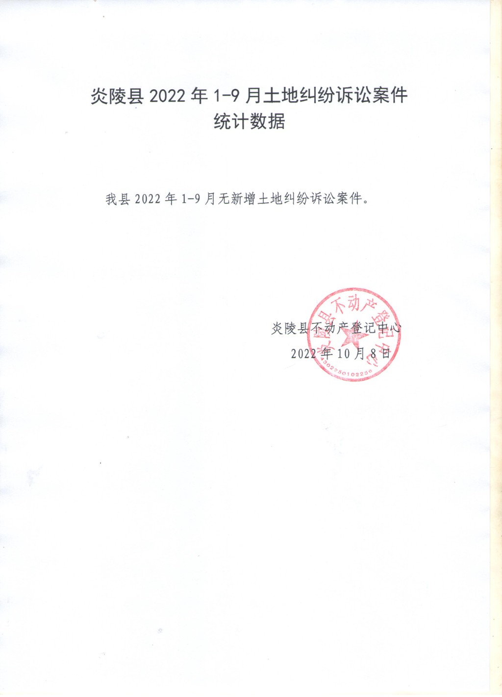 炎陵县2022年1-9月份土地纠纷诉讼案件统计数据