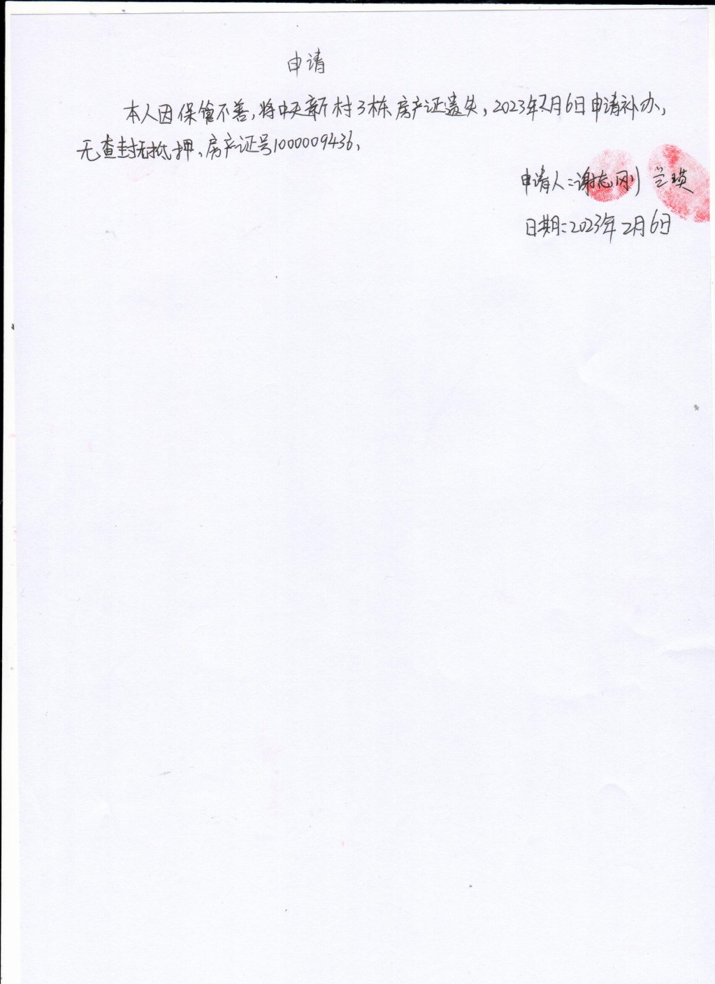 谢志刚——不动产证遗失补证公告