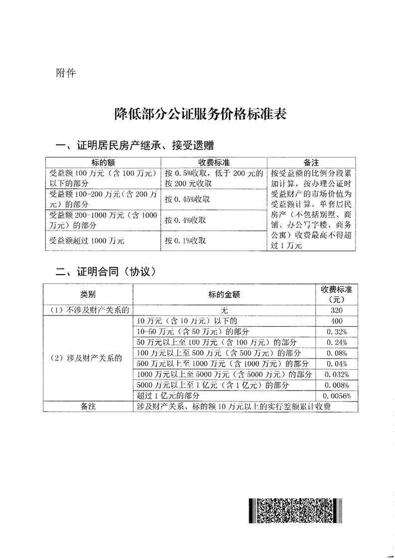 不动产登记相关公证服务价格公示