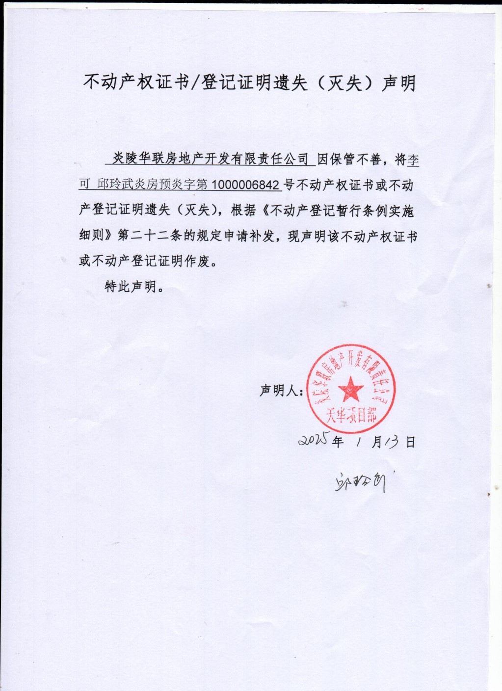 李可、邱玲武预告证遗失声明