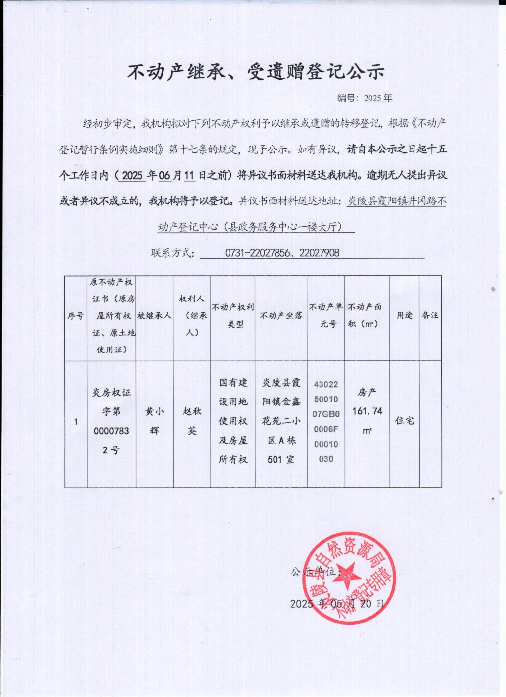 赵秋英不动产继承公告