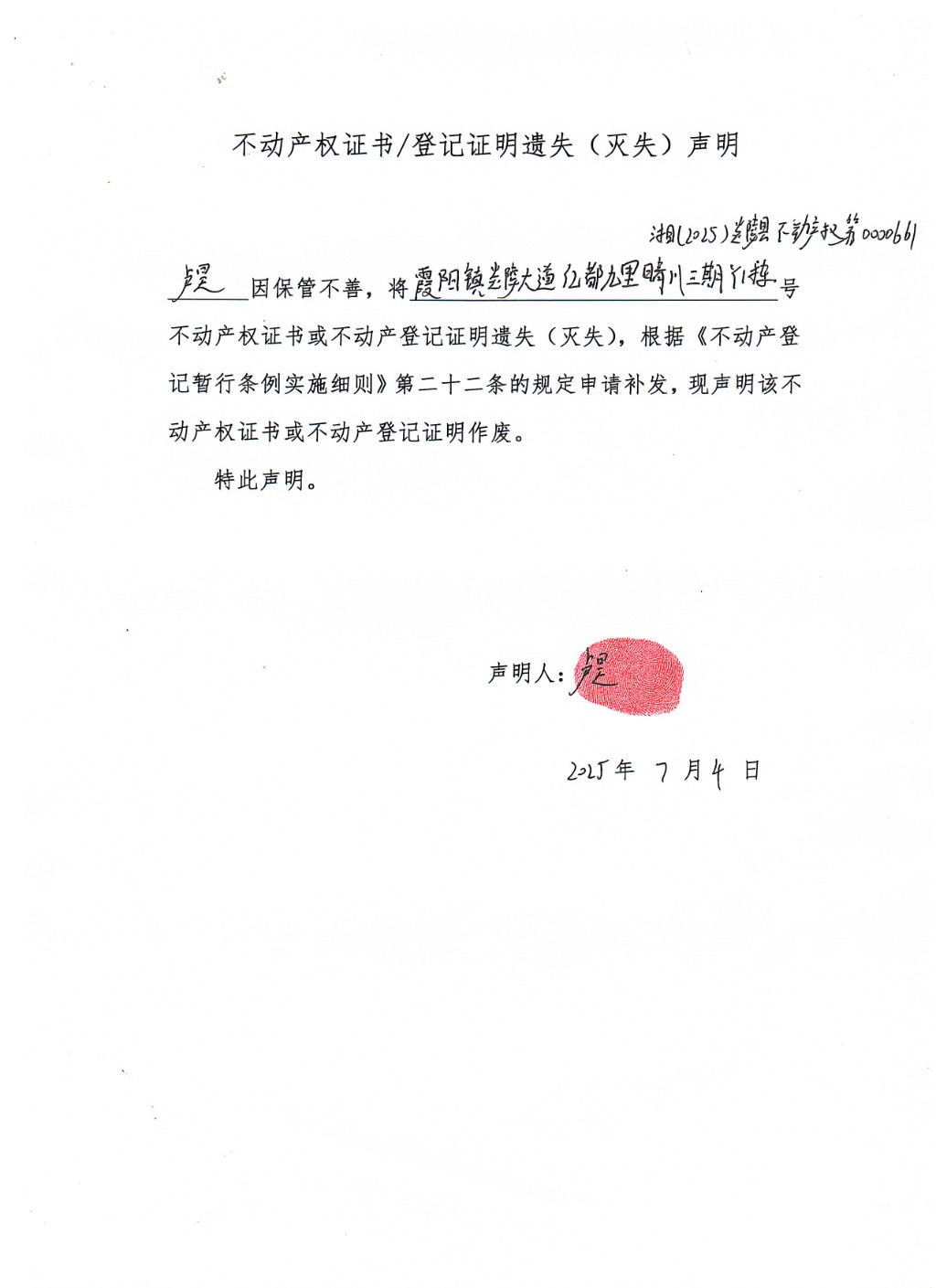 卢昊不动产权证遗失补发