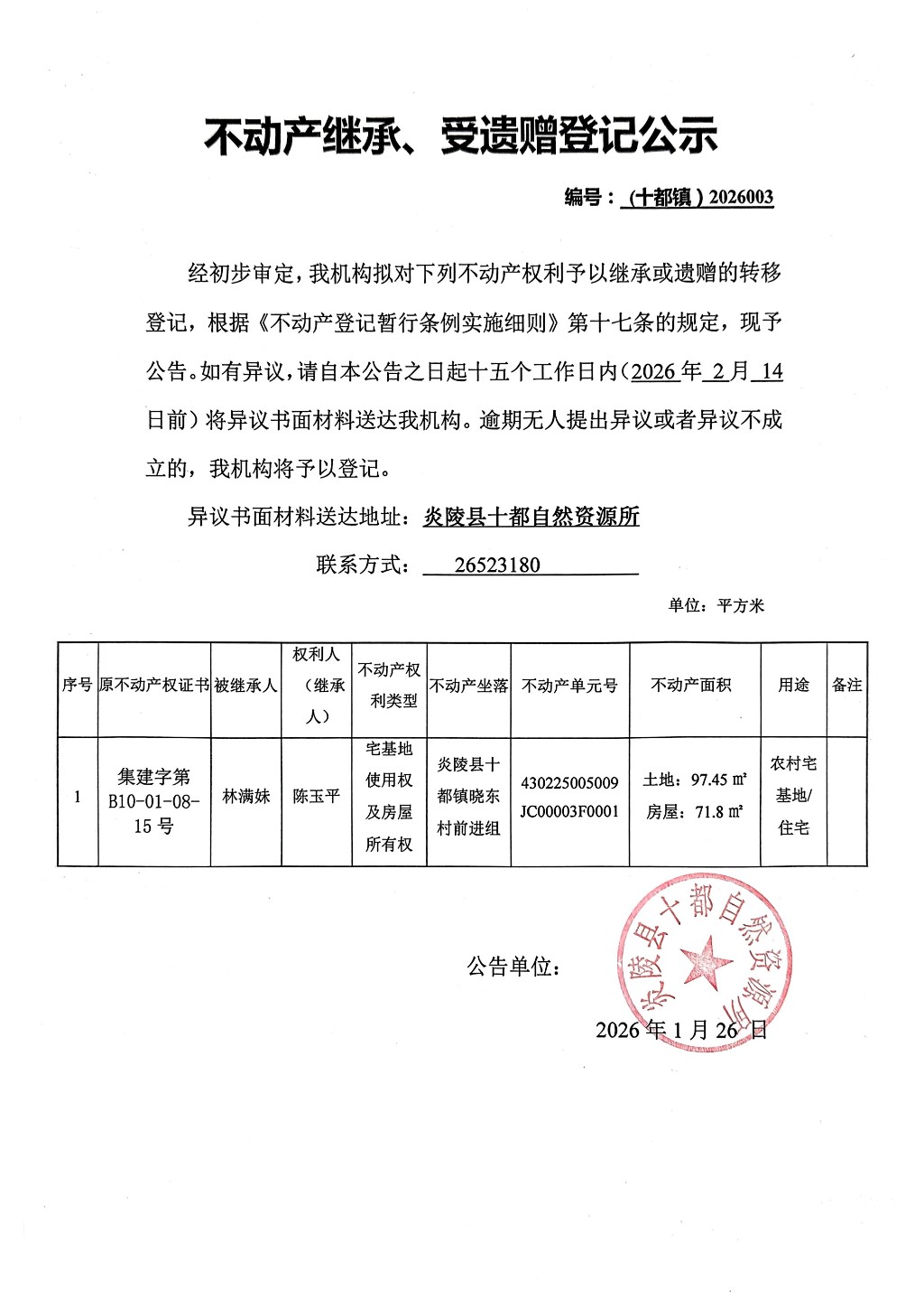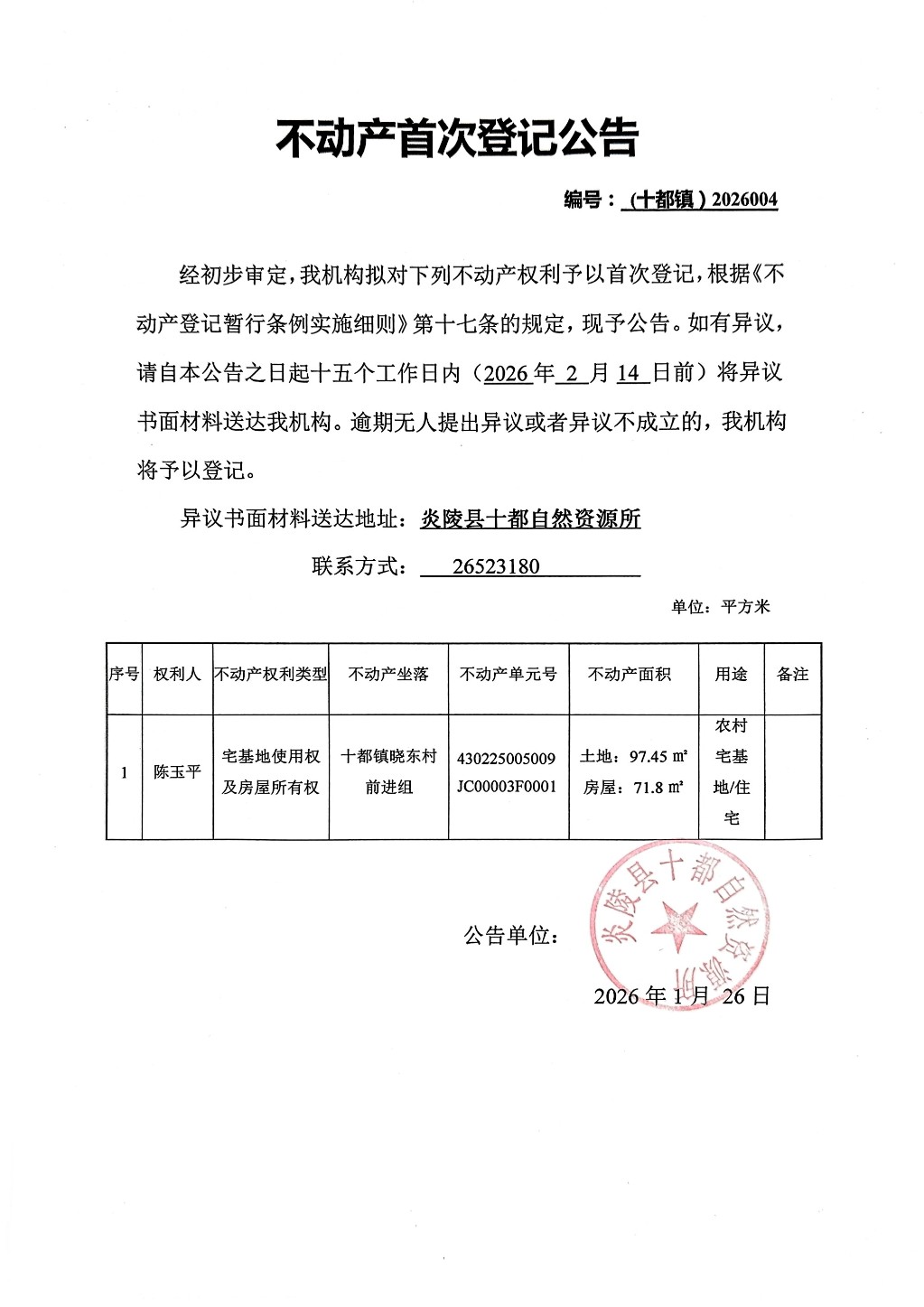 陈玉平—不动产首次、继承登记公告