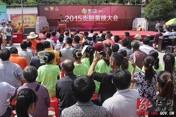 浏览次数: 发布时间:2015-07-20 18:01天上仙桃,炎陵黄桃。7月20日,由炎陵县黄桃产业协会、炎陵搜农电子商务有限公司联合举办的2015年炎陵黄桃大会暨"游人间仙境 品炎陵黄桃"活动在平乐乡拉开帷幕。活动吸引了全国各地的客商和游客。