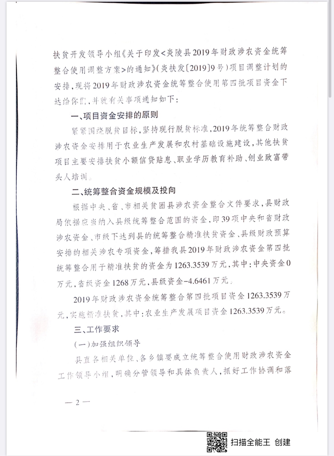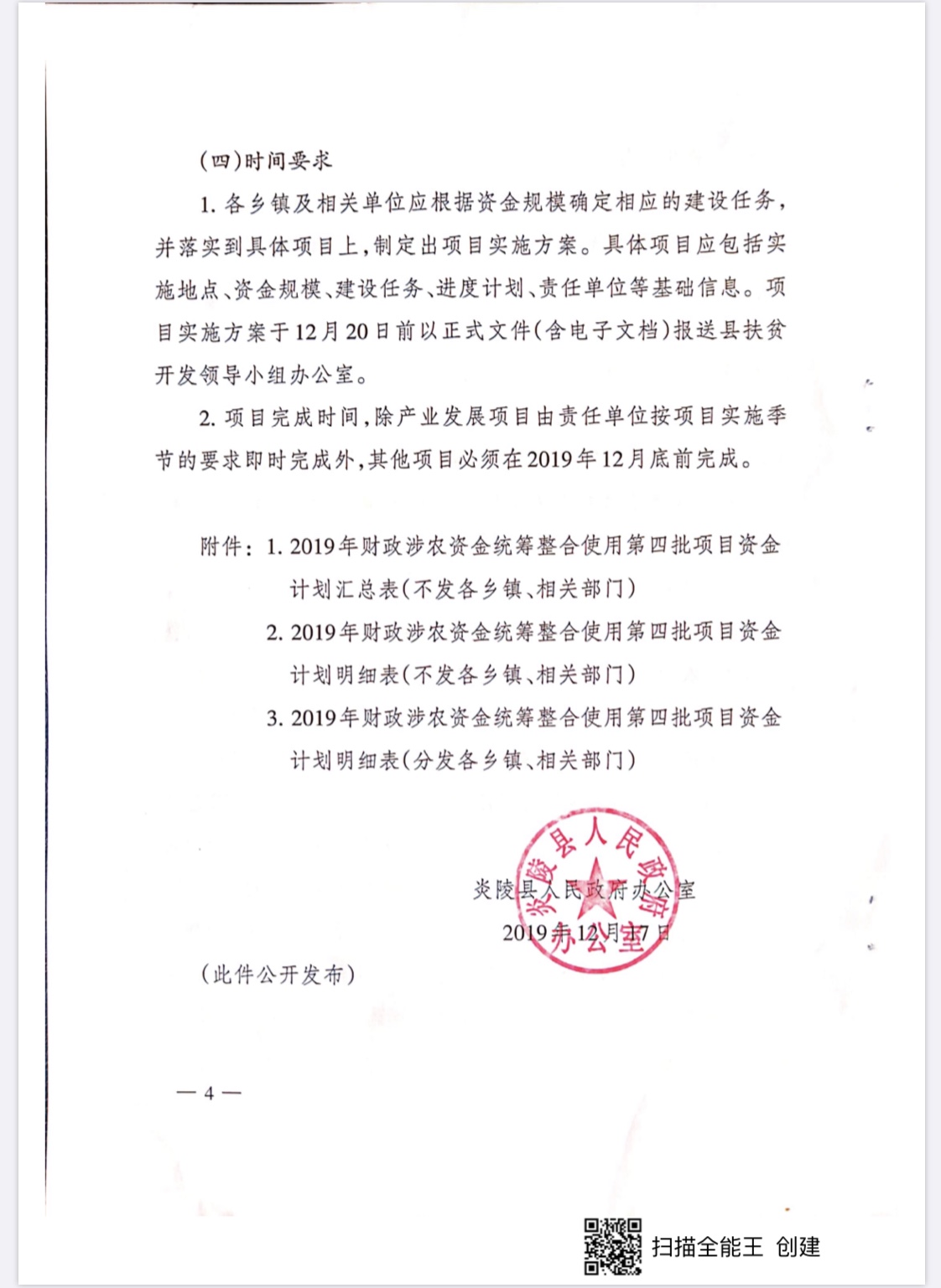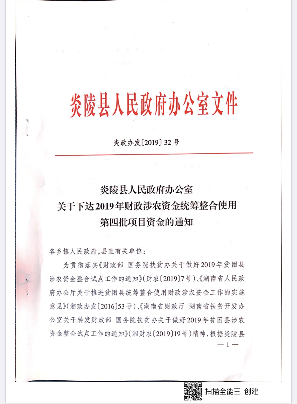 请下载附件:关于下达2019年财政涉农资金统筹整合使用第四批项目资金的通知(炎政办发[2019]32号)
