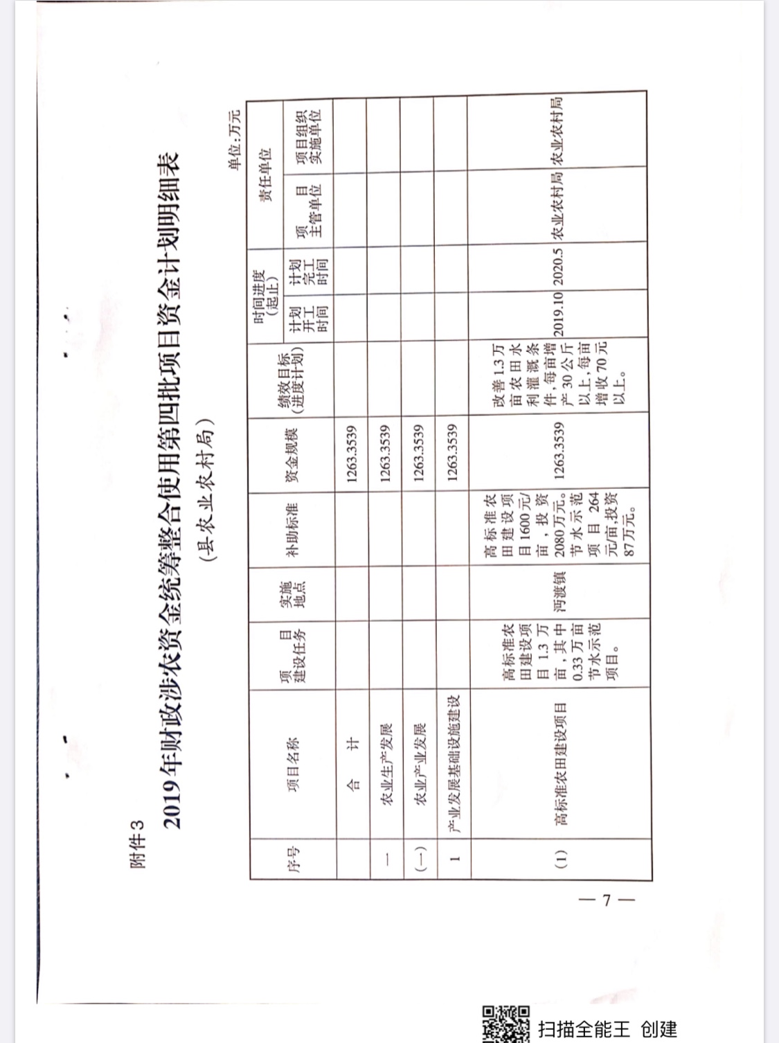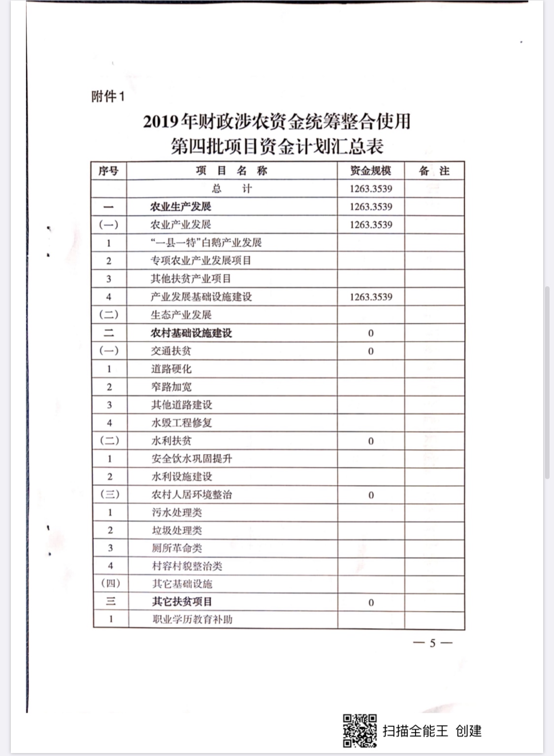 关于下达2019年财政涉农资金统筹整合使用第四批项目资金的通知