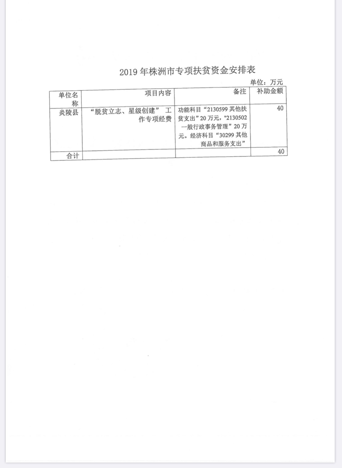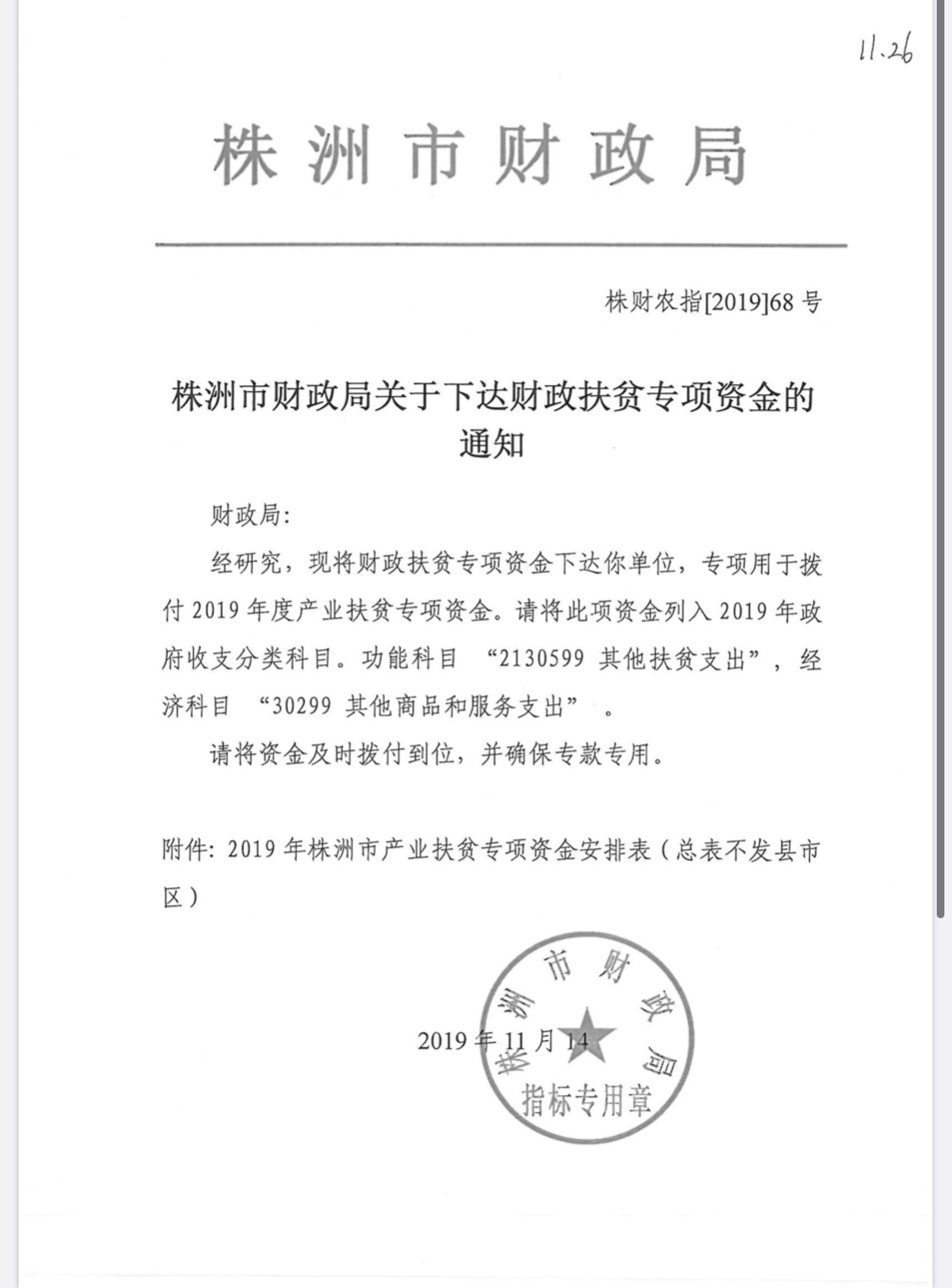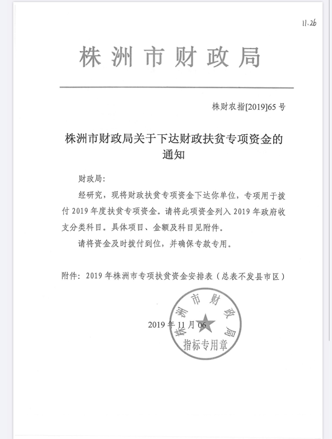 株洲市财政局关于下达财政专项扶贫资金的通知