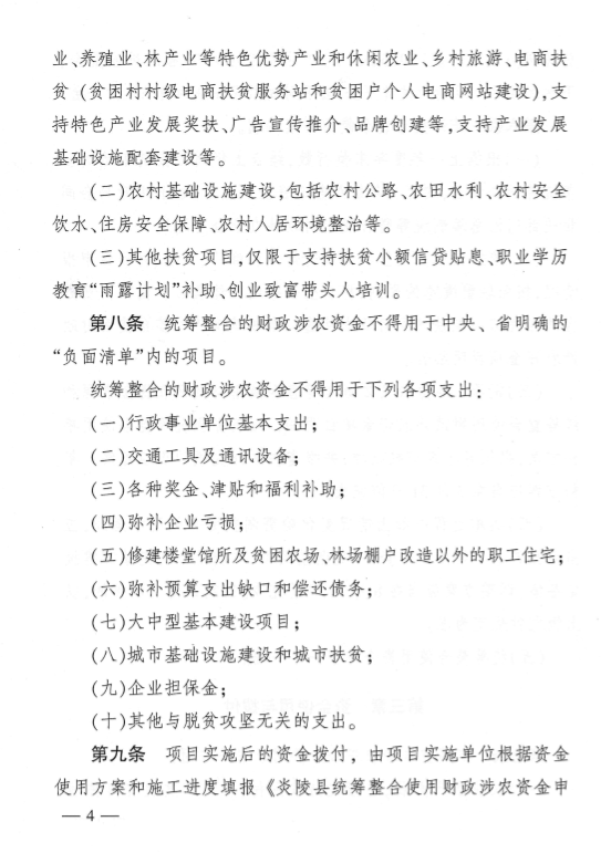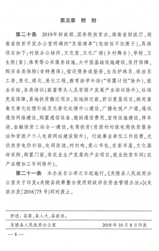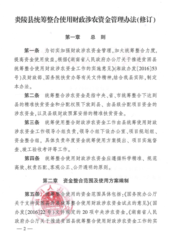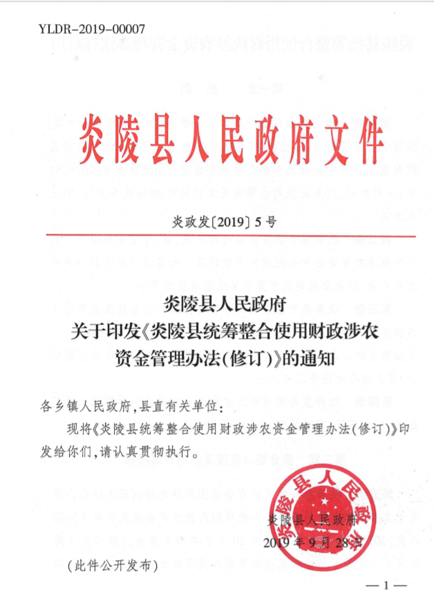 关于印发《炎陵县统筹整合使用财政涉农资金管理办法(修订)》的通知
