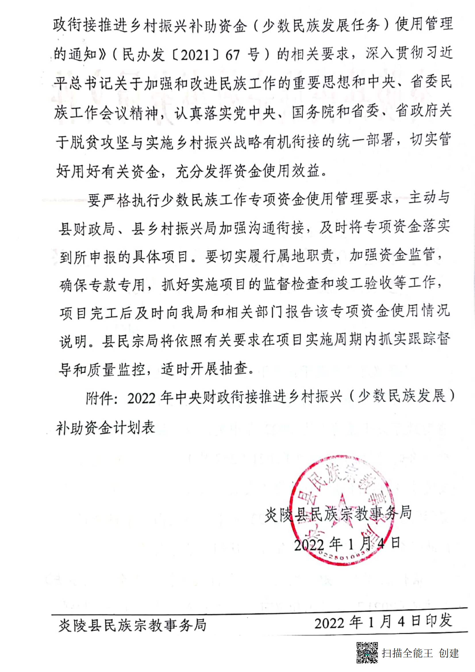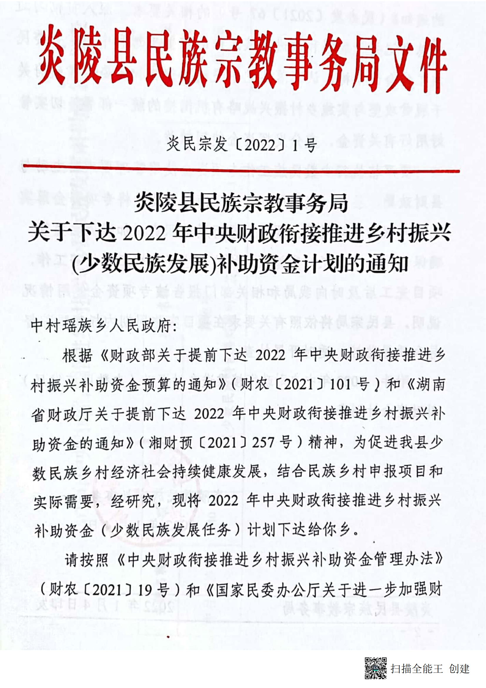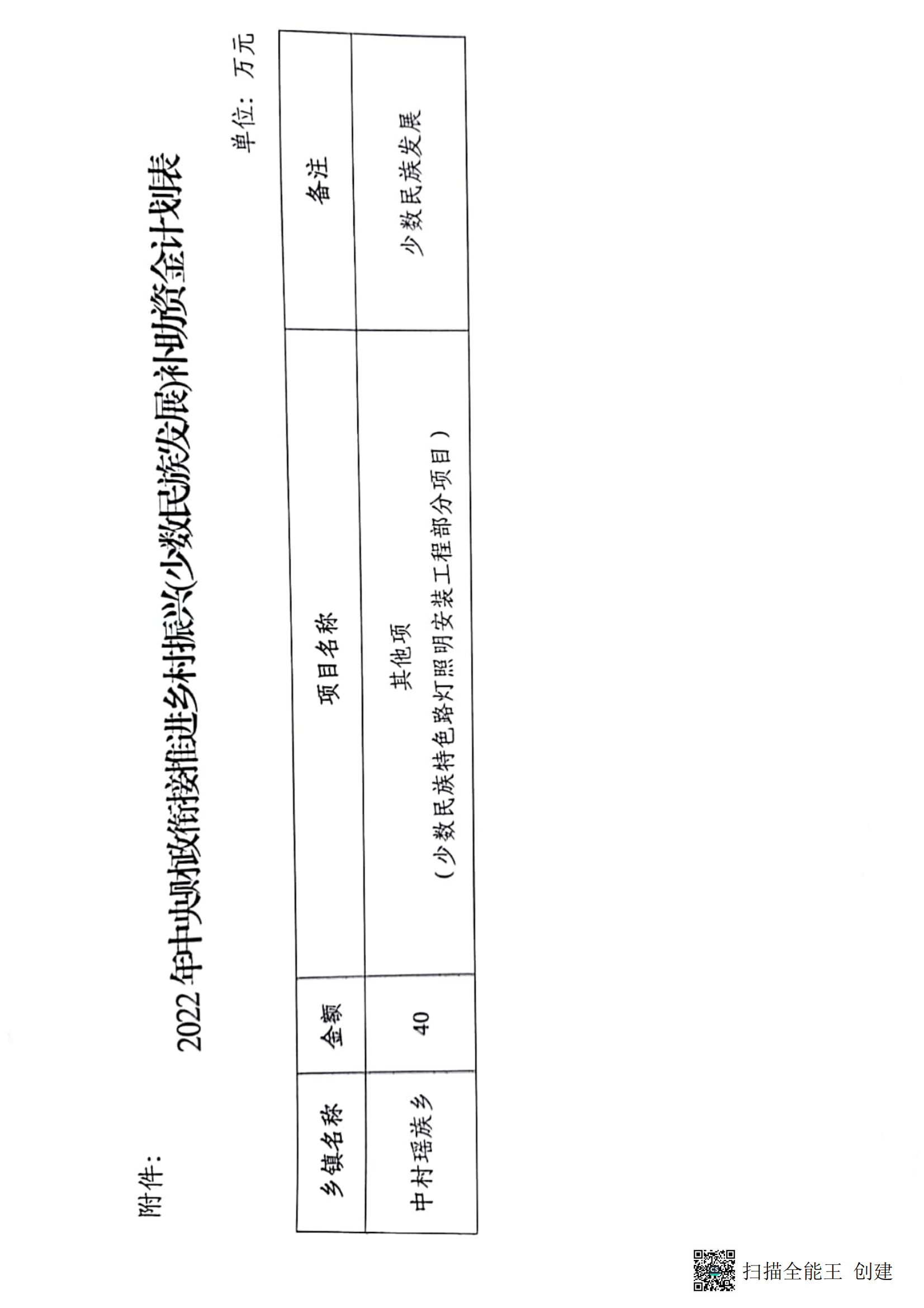关于下达2022年中央财政衔接推进乡村振兴 (少数民族发展)补助资金计划的通知