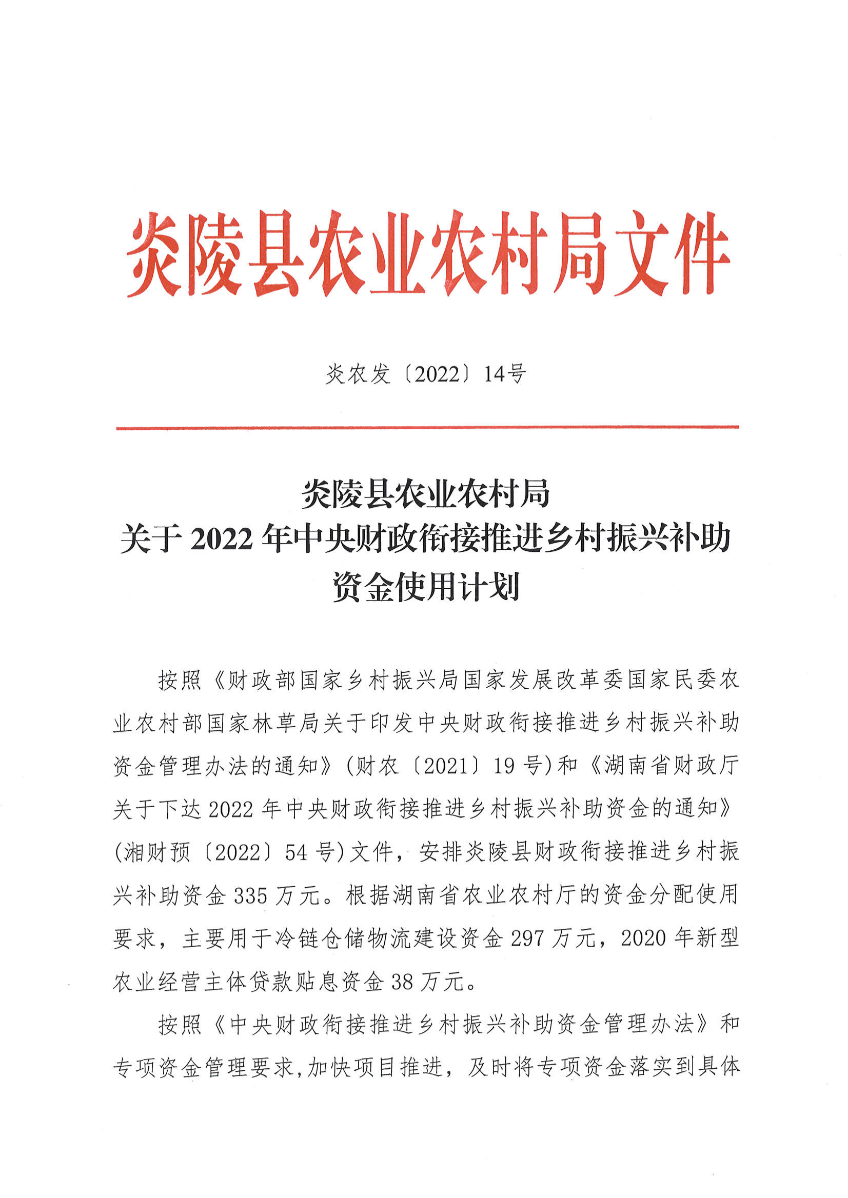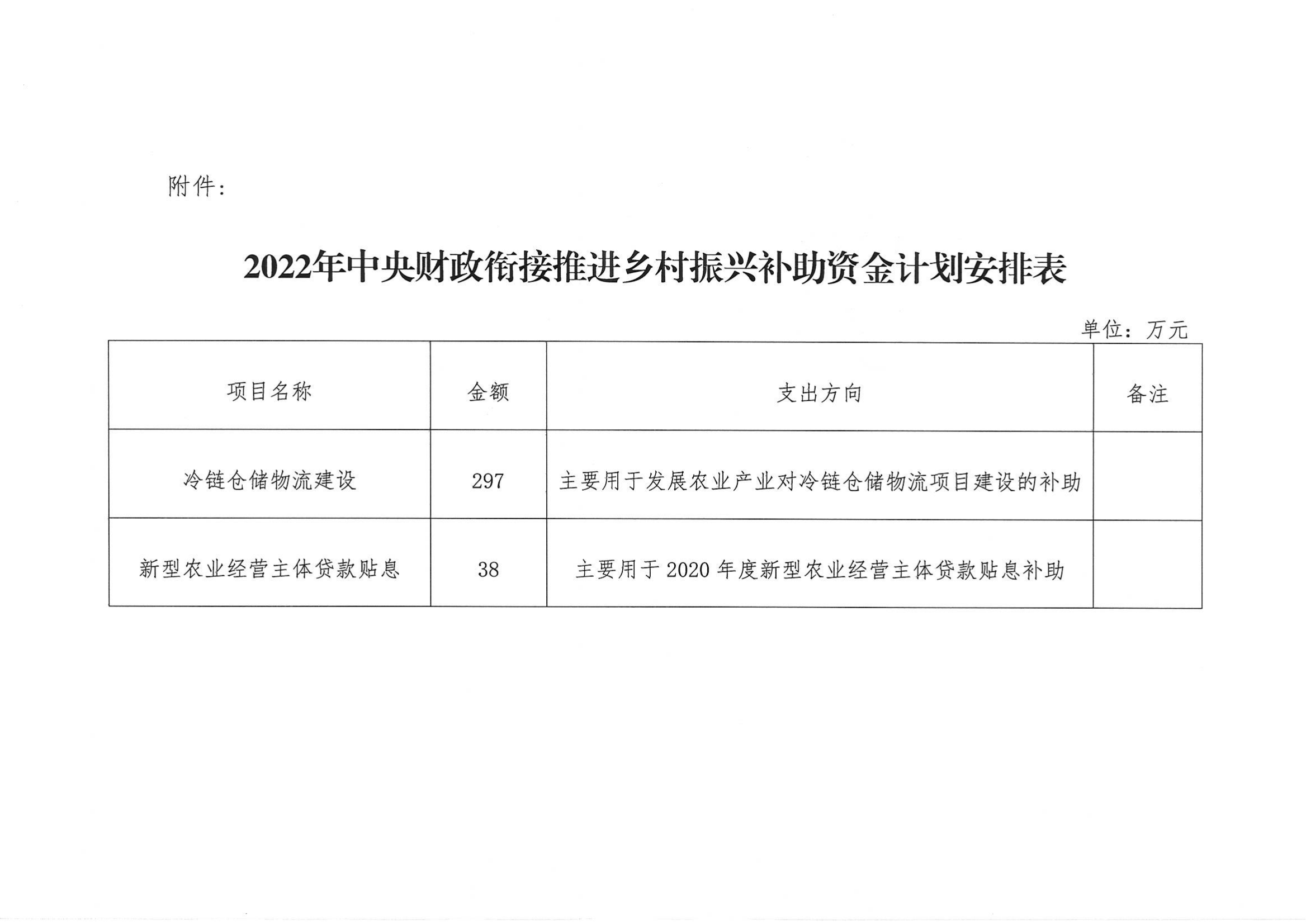 关于2022年中央财政衔接推广乡村振兴补助资金使用计划