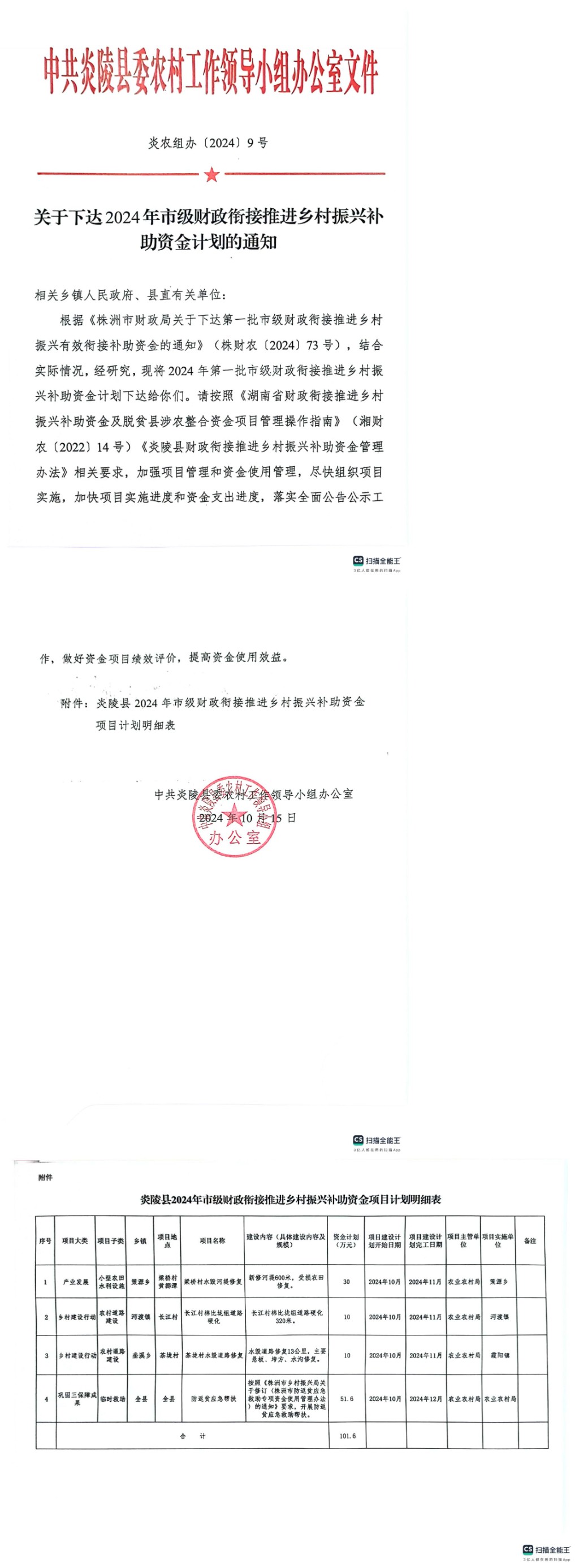关于下达2024年市级财政衔接乡村振兴补助资金计划的通知