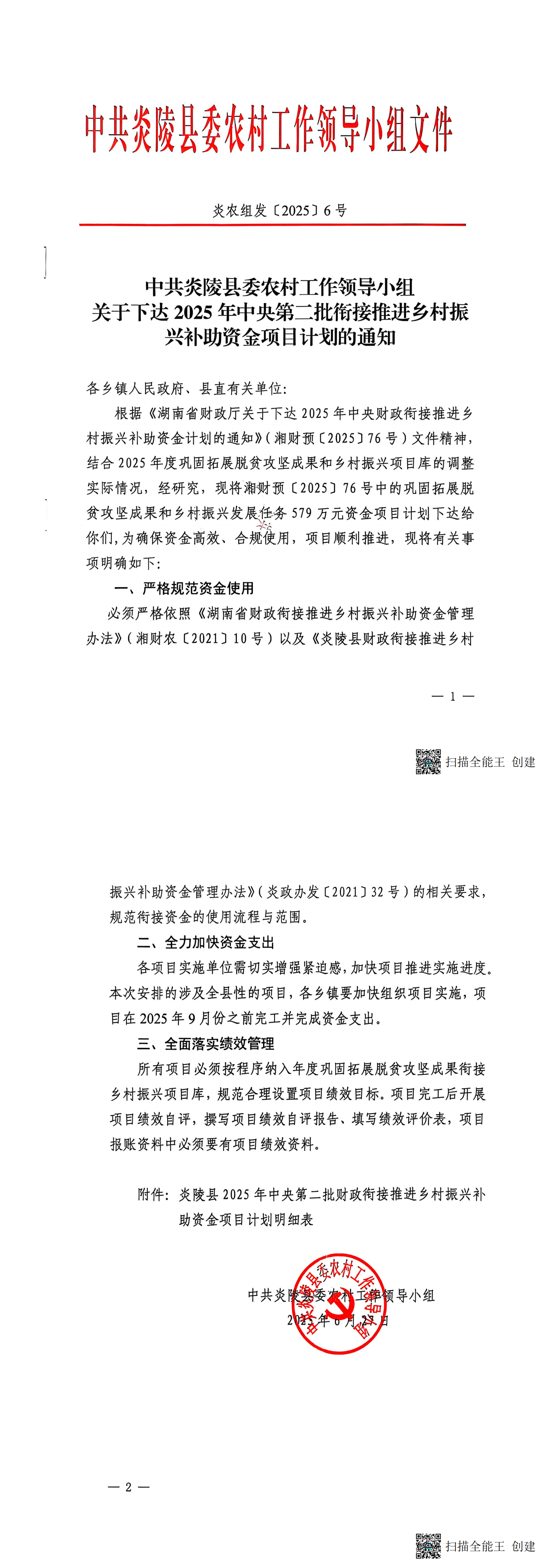 关于下达2025年中央第二批衔接推进乡村振兴补助资金项目计划的通知