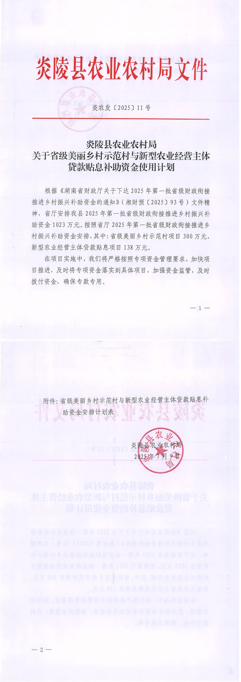 关于省级美丽乡村示范村与新型农业经营主体贷款贴息补助资金使用计划