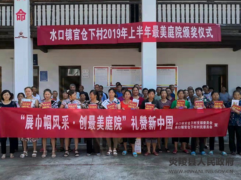 此次评选活动,各村妇联主席及巾帼志愿者们采用临时抽检的方式,走访入户、对标对表,检查庭院、居室和厨厕等卫生环境。在官仓下村2019年二季度最美庭院颁奖仪式上,25户农户高兴地从工作人员手中领取了二季度"最美庭院"的奖牌。大家纷纷表示,家里卫生干净,自己居得舒服,心情都更加愉悦了。