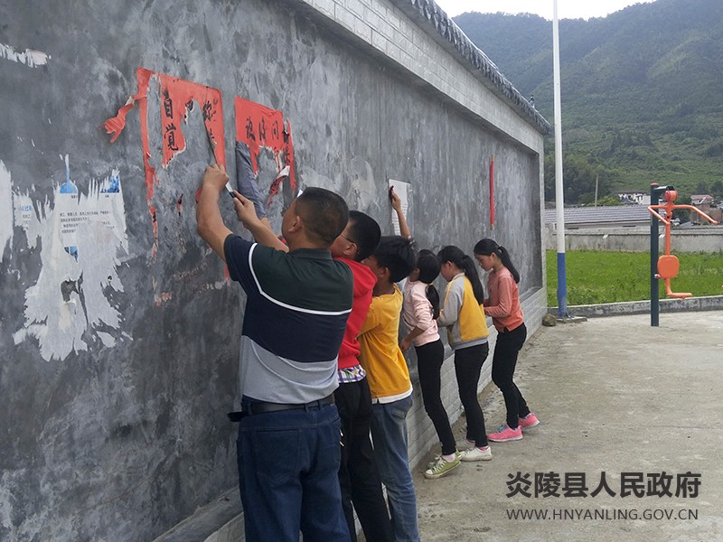 师生合力清理牛皮藓 下村乡容貌添新颜