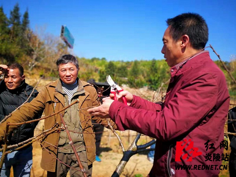 在黄桃基地,高级农艺师邓臣辉为桃农进行现场授课,他边修剪示范,边向桃农现场讲解要点:“内膛大、中型枝组过高或者上强下弱,可以回缩压低在适当的范围,以不影响光照、利于下部枝条复壮……”。他指出,冬季黄桃树管理好坏直接影响到明年黄桃的产量和品质。桃农们可根据桃树生物学特性和生长特点,做好冬季修剪。此外,也要做好桃园冬季管理工作,施基肥、修剪、病虫防治、桃园深翻、清洁果园等。
