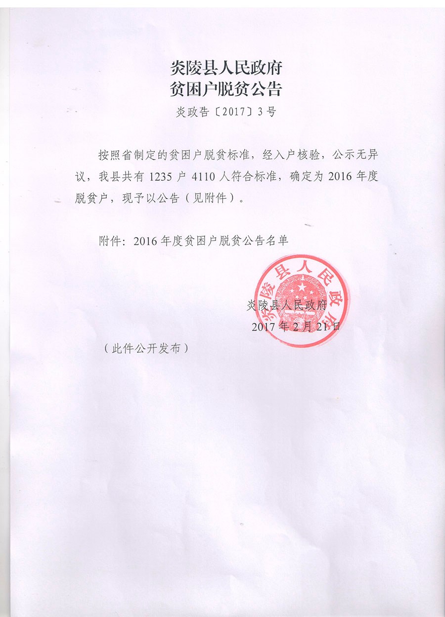 2016贫困户脱贫公告附件:2016年脱贫人口名册公告