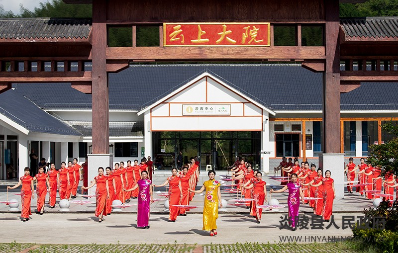 上午10时,60位娉婷袅娜的秀雅女子身着各色旗袍款款登场,一时间,云上大院的山水神韵中徜徉着窈窕淑女的曼妙仙姿,香飘云端的"大院乌龙"中回旋着婉转清扬的悠悠古乐。美轮美奂的生态环境与沁人心脾的文化魅力珠联璧合,带给广大游客和观众以天然的身心怡悦与唯美的艺术享受。