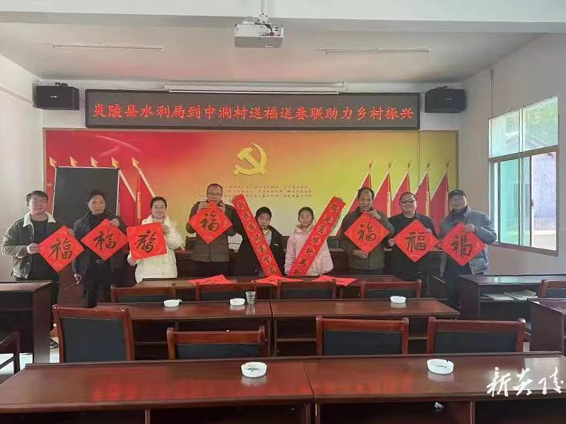 近日,炎陵县水利局组织驻村工作队在沔渡镇中洞村开展“送福送联送温暖”活动,免费为村民书写福字小斗方及春联,让村民们切实感受到浓浓的节日氛围。