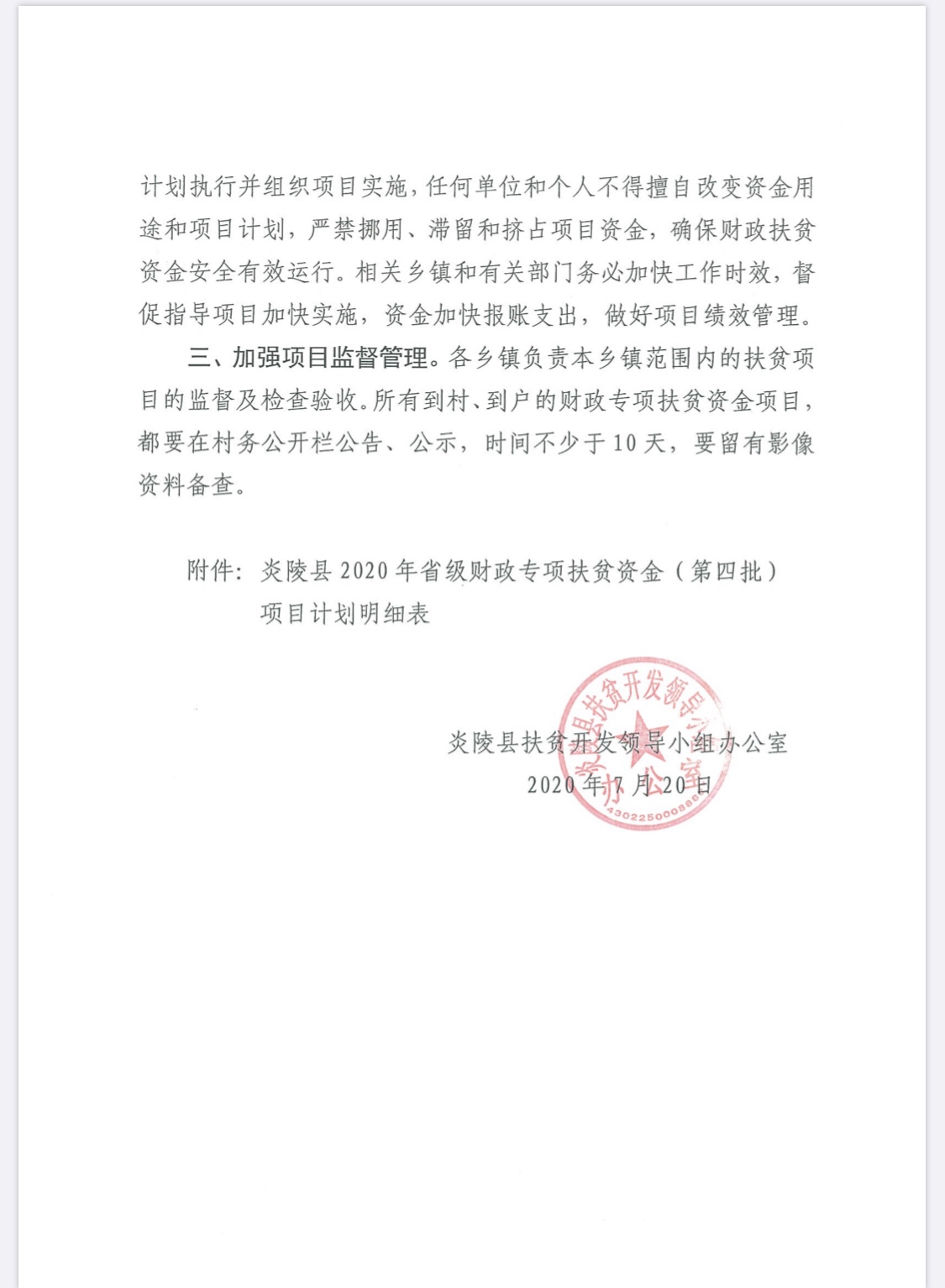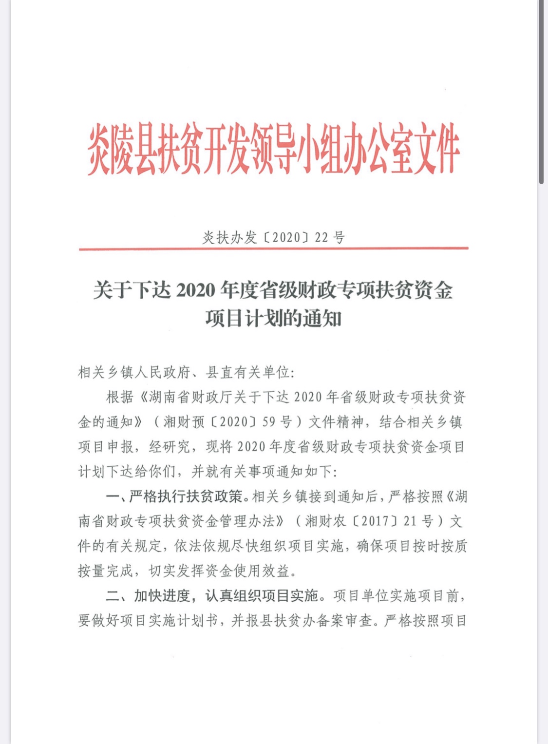 请下载附件:关于下达2020年度省级财政专项扶贫资金项目计划的通知(炎扶办发[2020]22号)